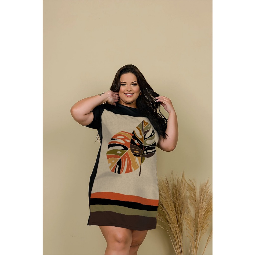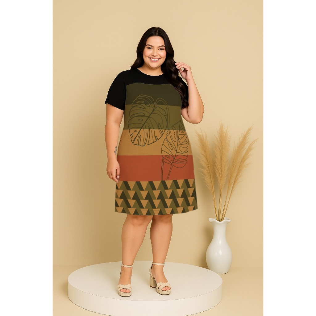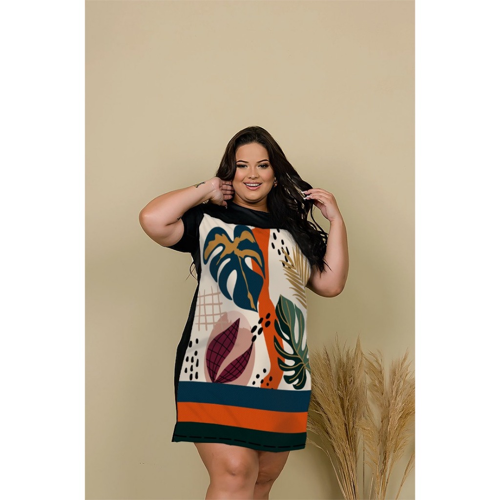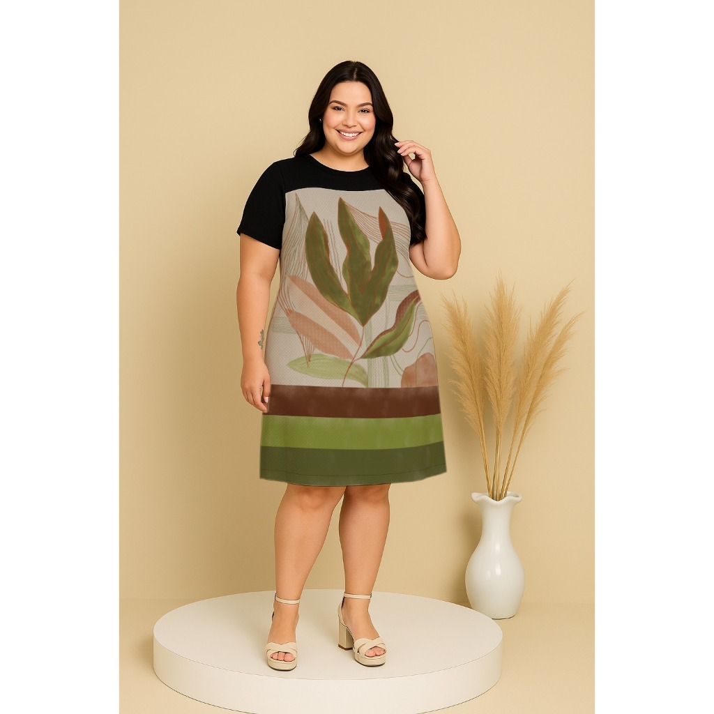 Vestido Plus Size Soltinho com Tecido Leve e Sedinha Digital Aquele Que Todo Mundo Quer e Você Precisa Ter