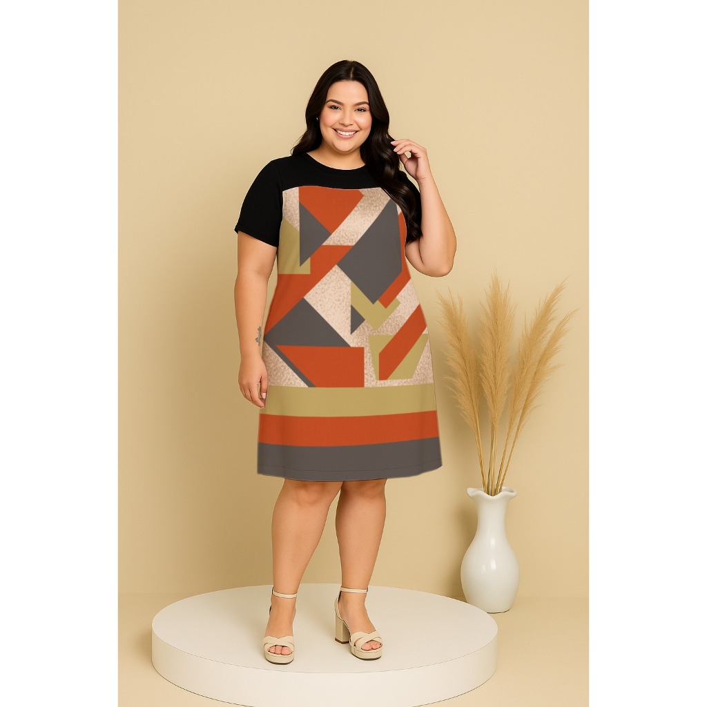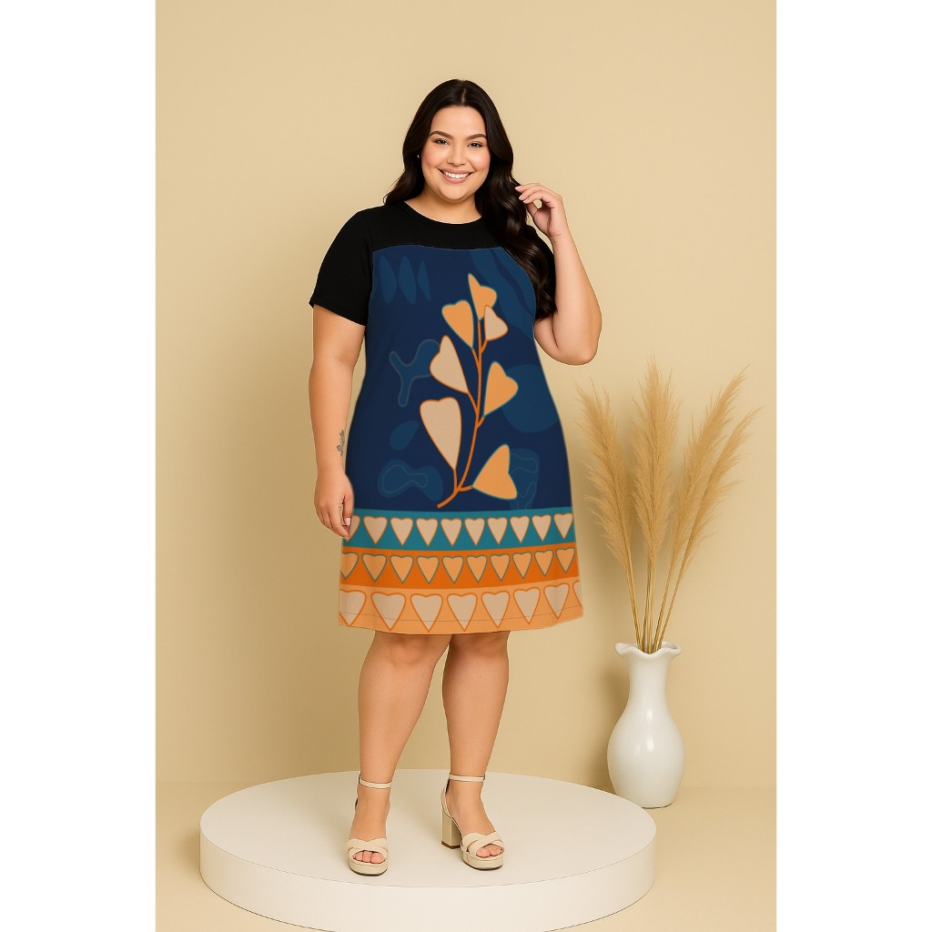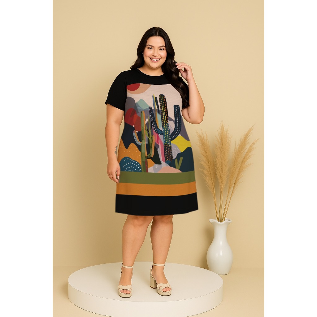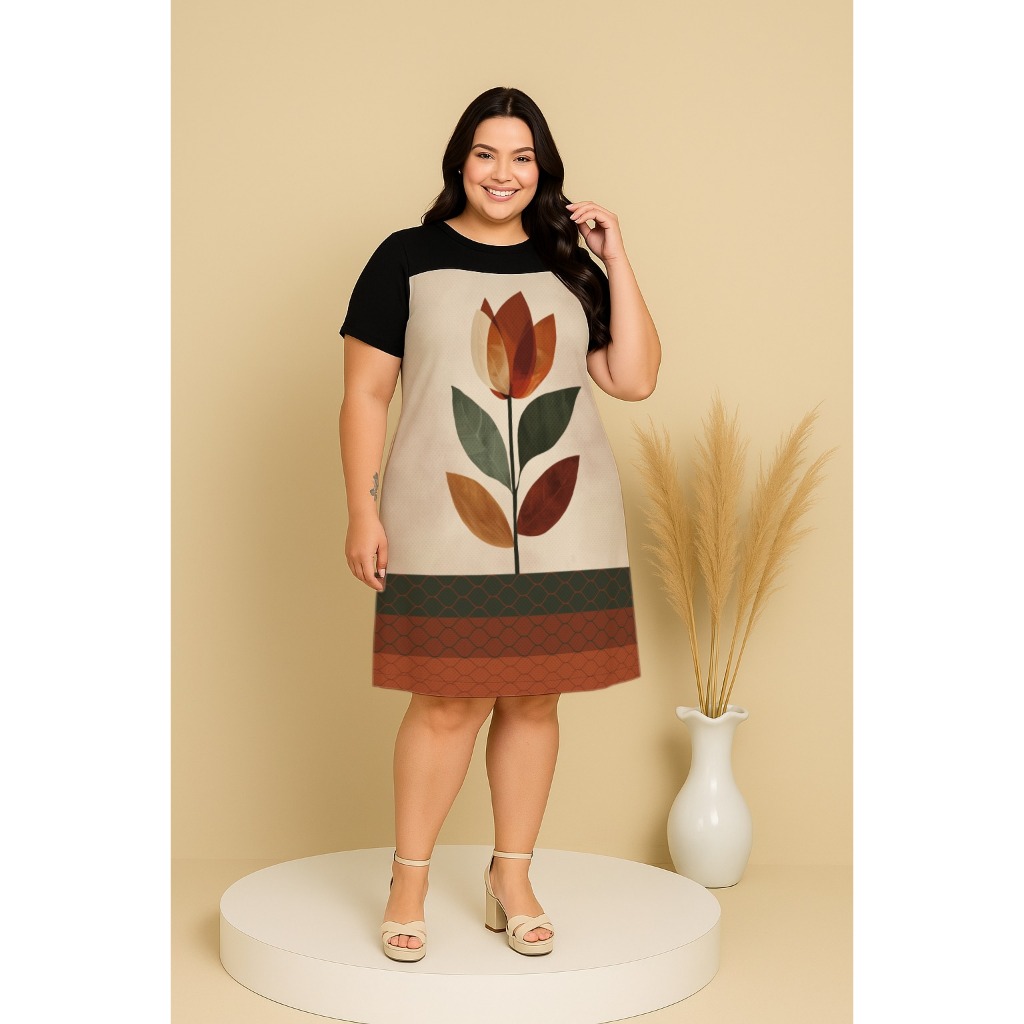 Vestido Plus Size Soltinho com Tecido Leve e Sedinha Digital Aquele Que Todo Mundo Quer e Você Precisa Ter