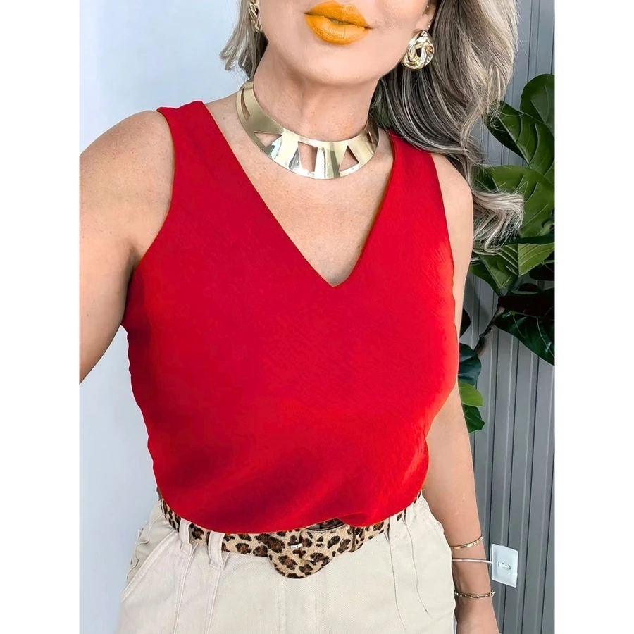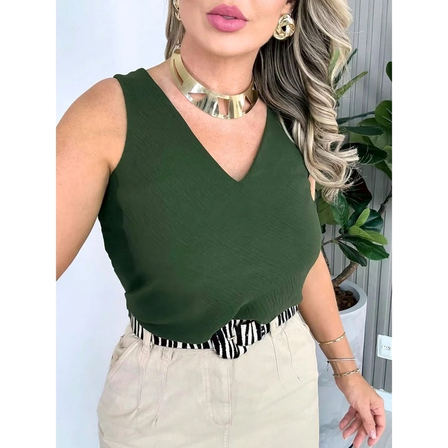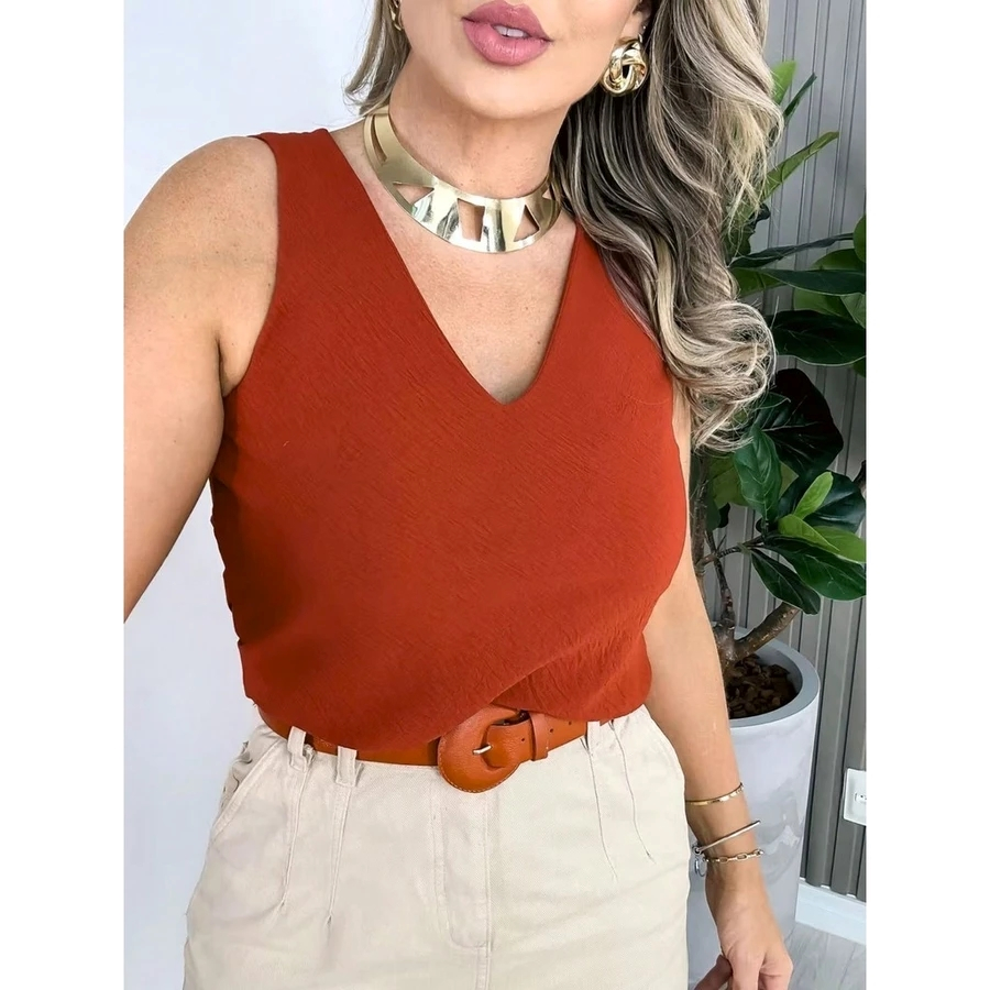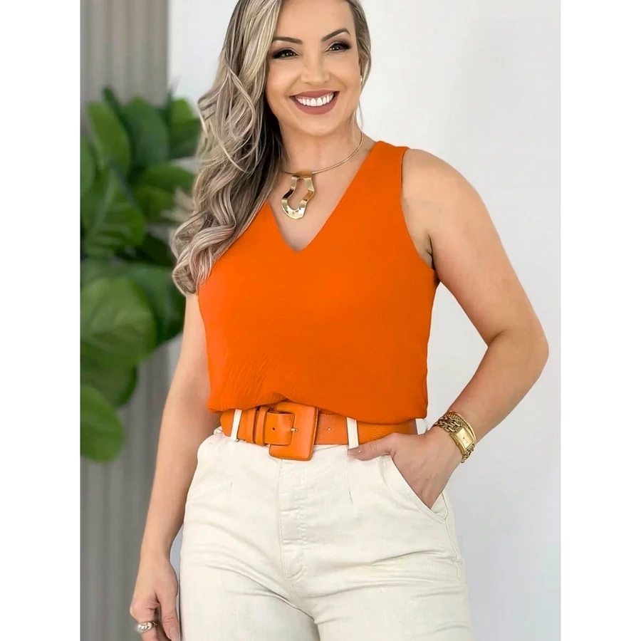 Blusa Feminina Social Regata Alça Larga Tecido Duna Tendência Moda !!!