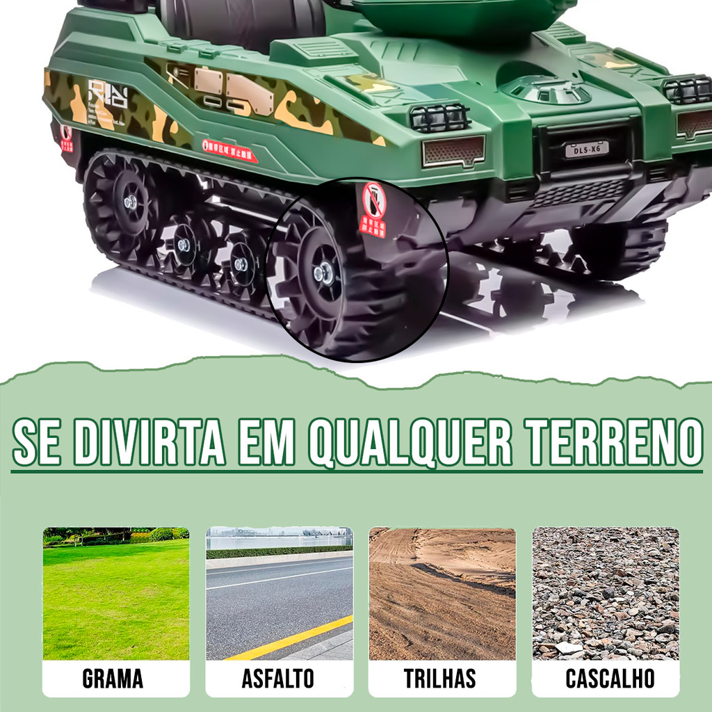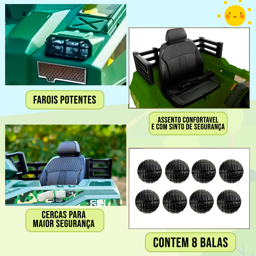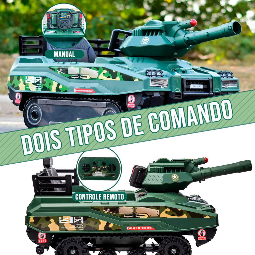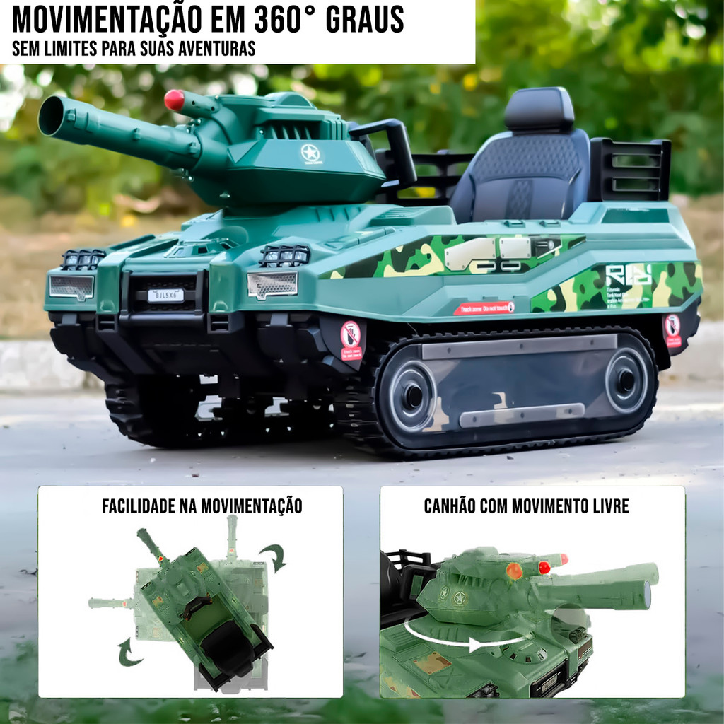 Mini Tanque Guerra Carro Eletrico Infantil c/ Musicas e Disparo de projeteis para Criança 2 a 6 anos