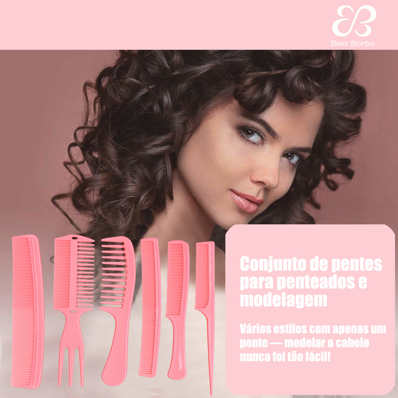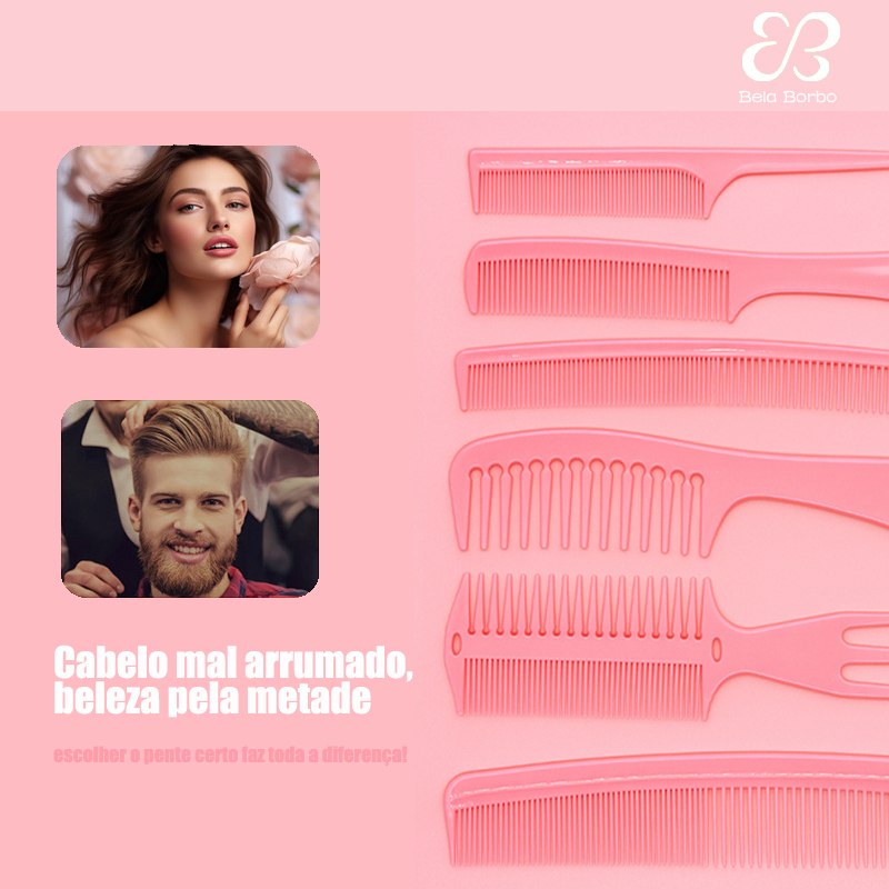 Kit com 6 Pentes Profissionais para Cabelo – Desembaraçar, Modelar, Finalizar