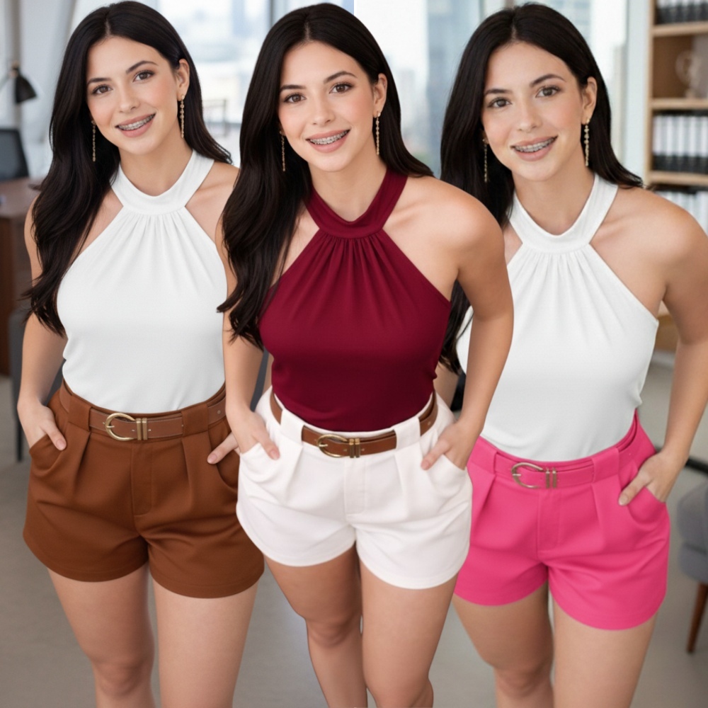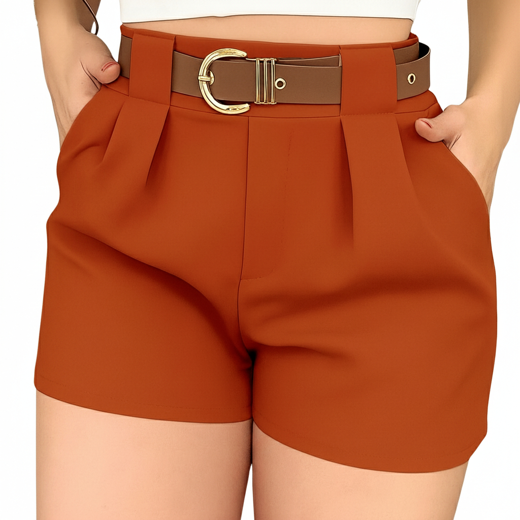 Kit 2 Shorts Femininos Alfaiataria Social Cintura Alta com Cinto – Elegante e Confortável | Promoção