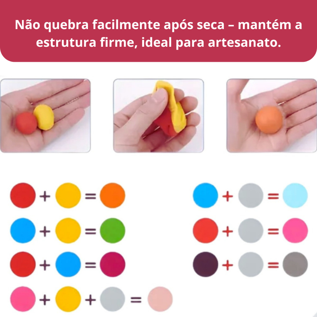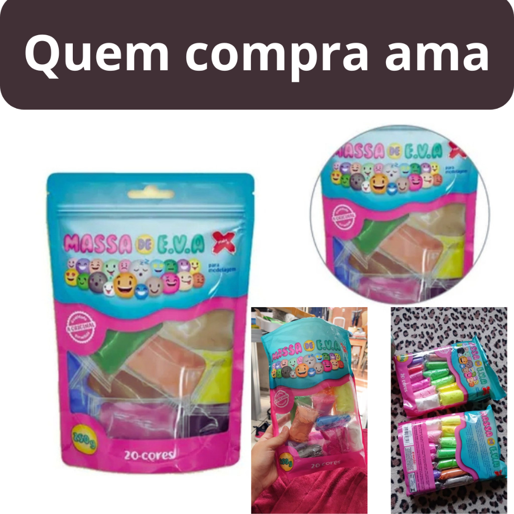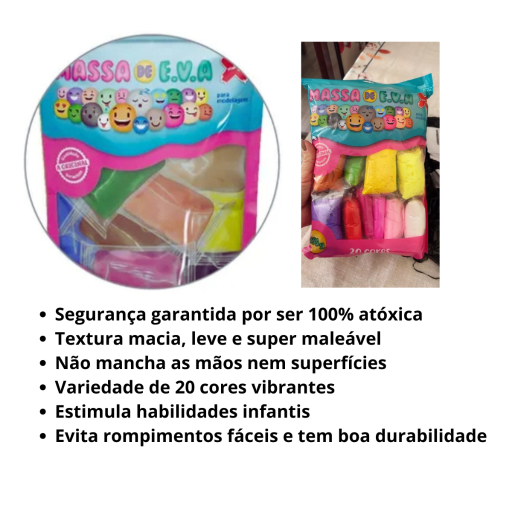 Massa EVA Colorida 20 Cores 250g Infantil Criativa Artesanato Infantil Make+ Consistência Elástica