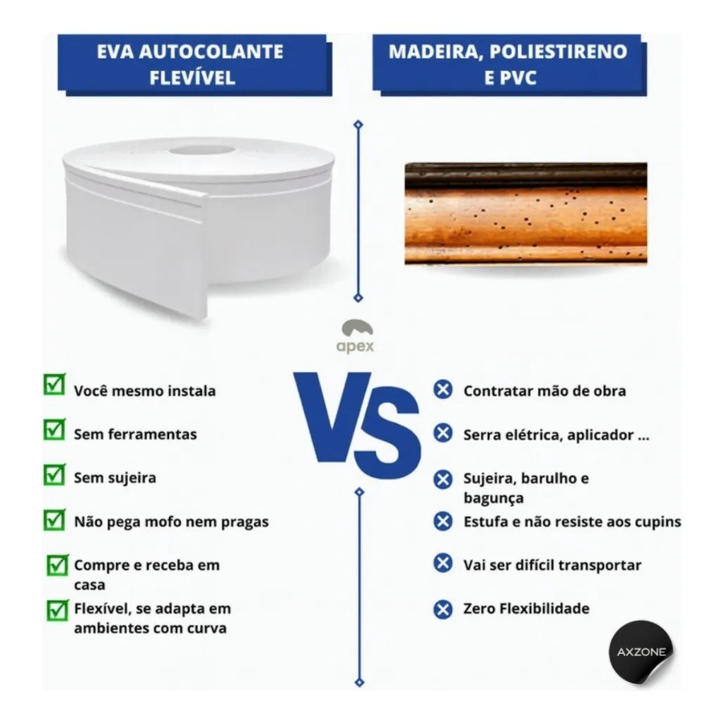 Kit 10 Rolos 50 Metros Rodapé Ripado EVA Autocolante 7cmx5m