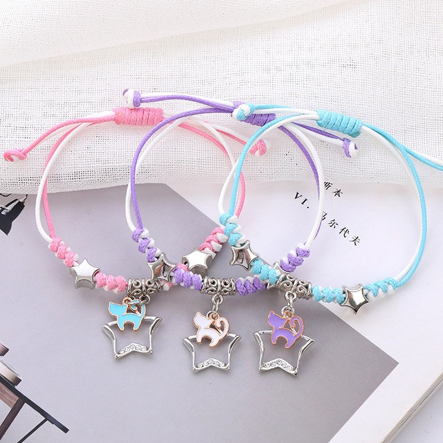 Conjunto de 3 peças amizade casal pulseira menina bonito dos desenhos animados pingente ajustável moda cor senhoras HGF