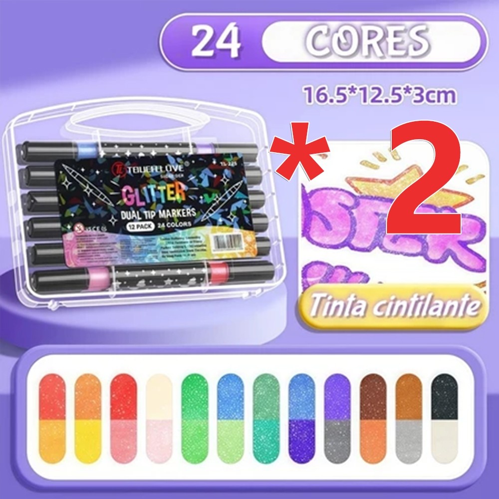 Marcador metálico 24/48/96 caneta de glitter de cabeça dupla marcador de cabeça dupla brilhante kit canetinhas coloridas