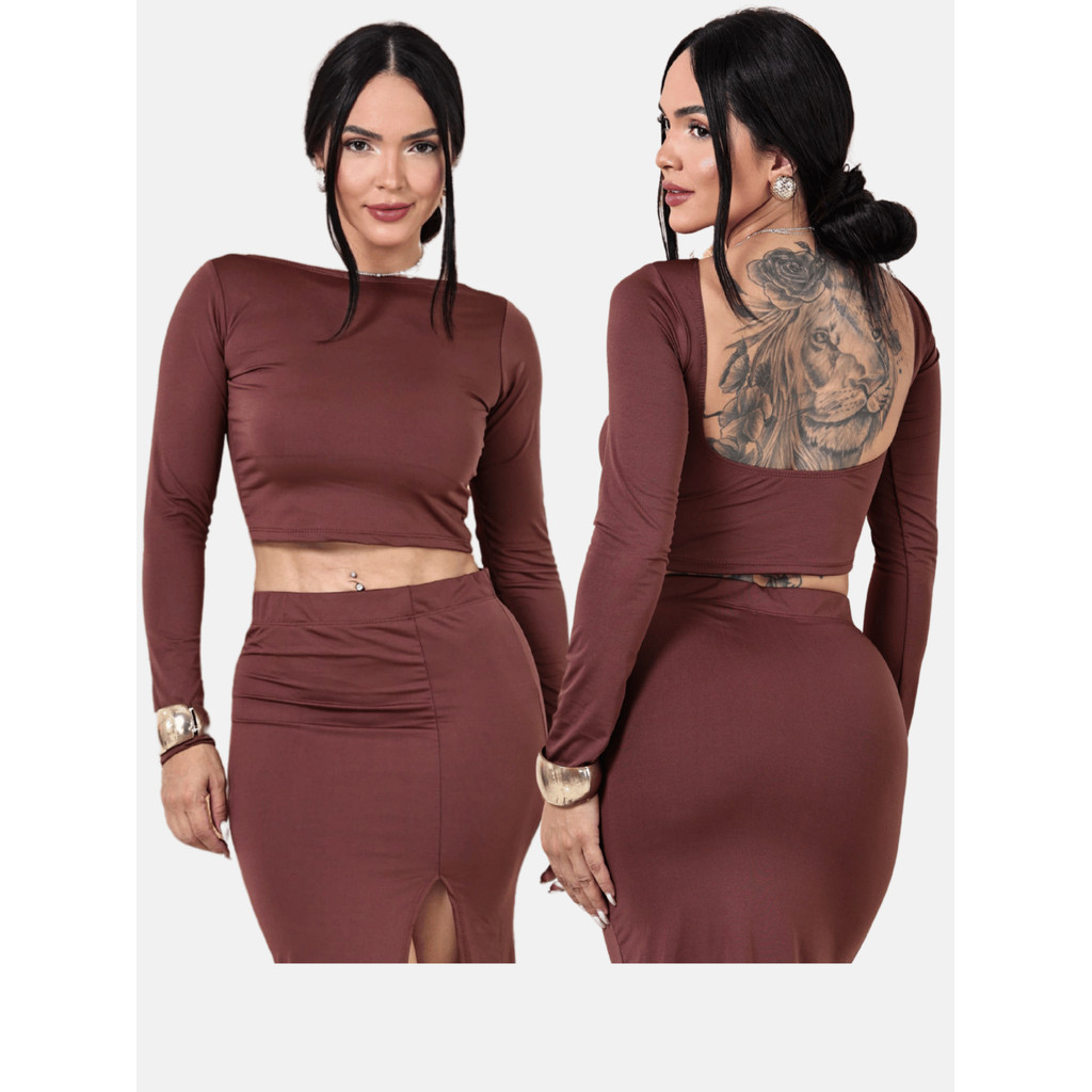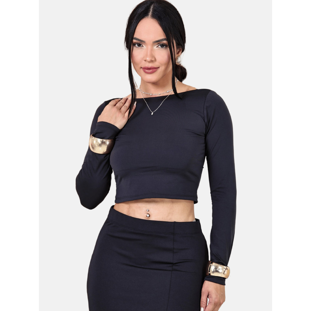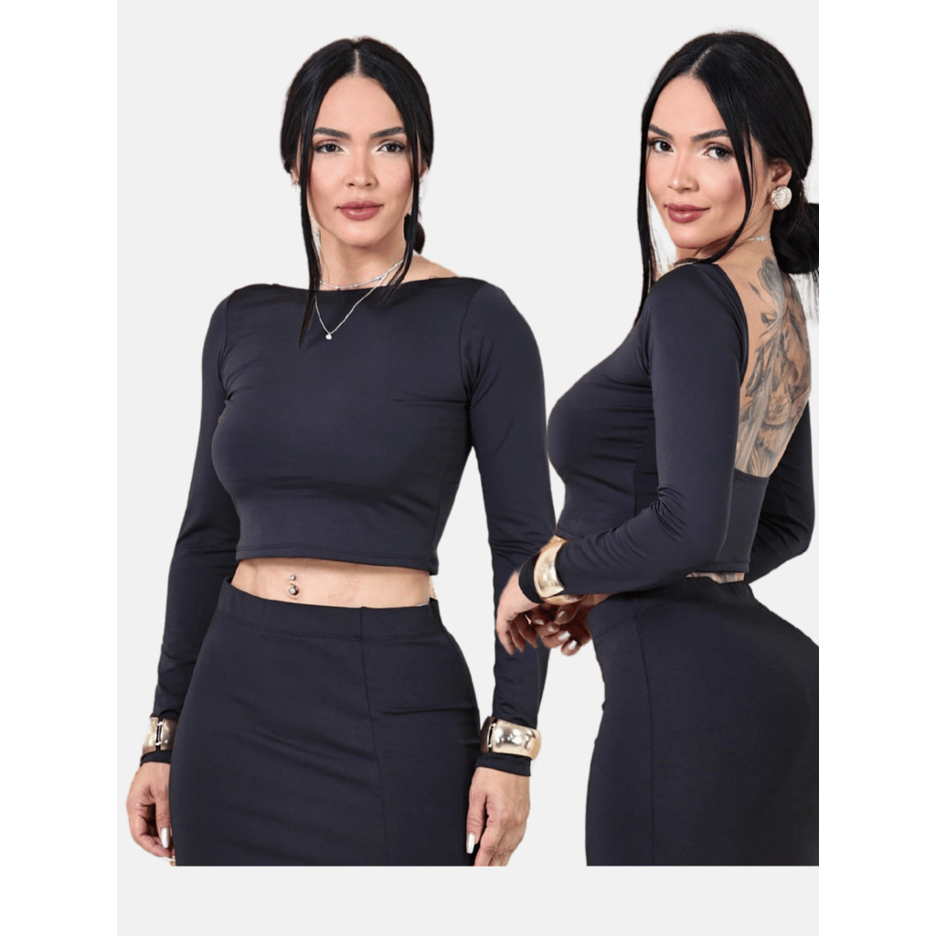 Cropped Costas Nua Feminino com Manga Longa Top Com Manga