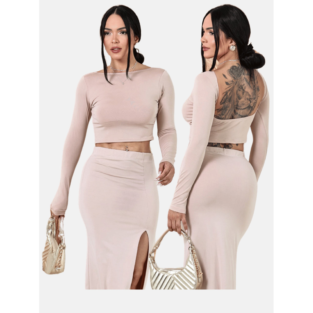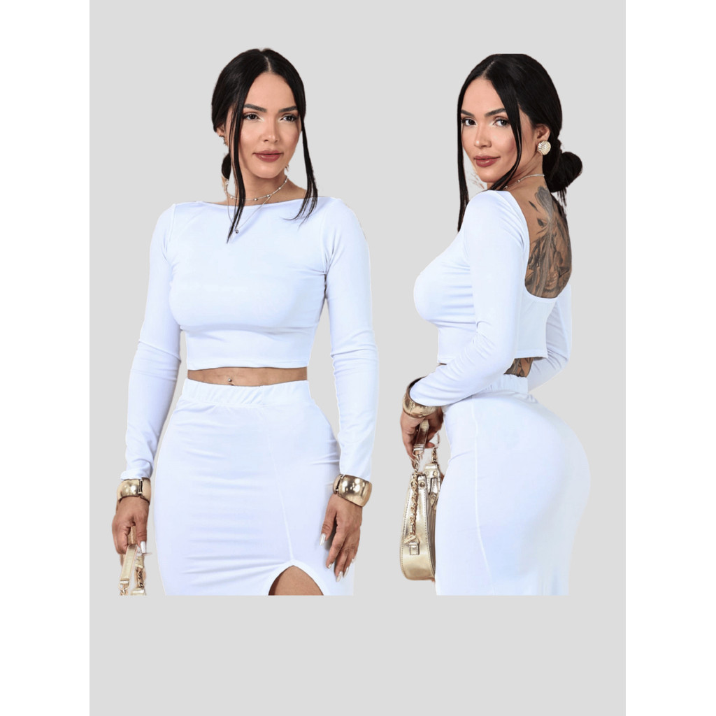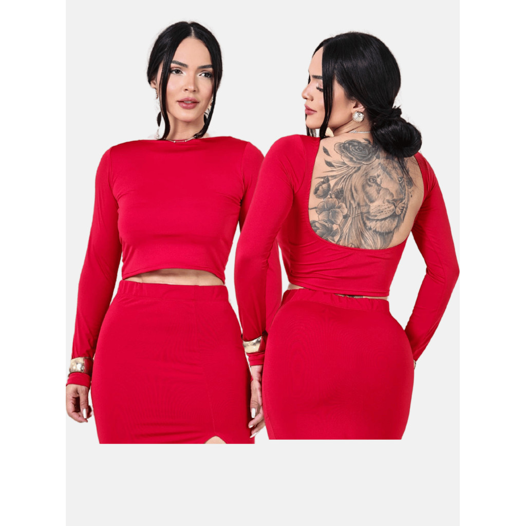 Cropped Costas Nua Feminino com Manga Longa Top Com Manga