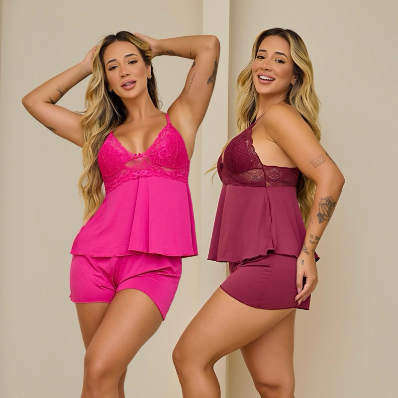 Kit com 2 Baby Doll Sexy Renda | Pijama Curto Feminino | Short Doll Sensual | Roupa de Dormir