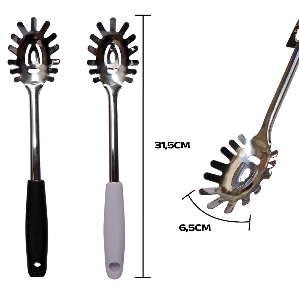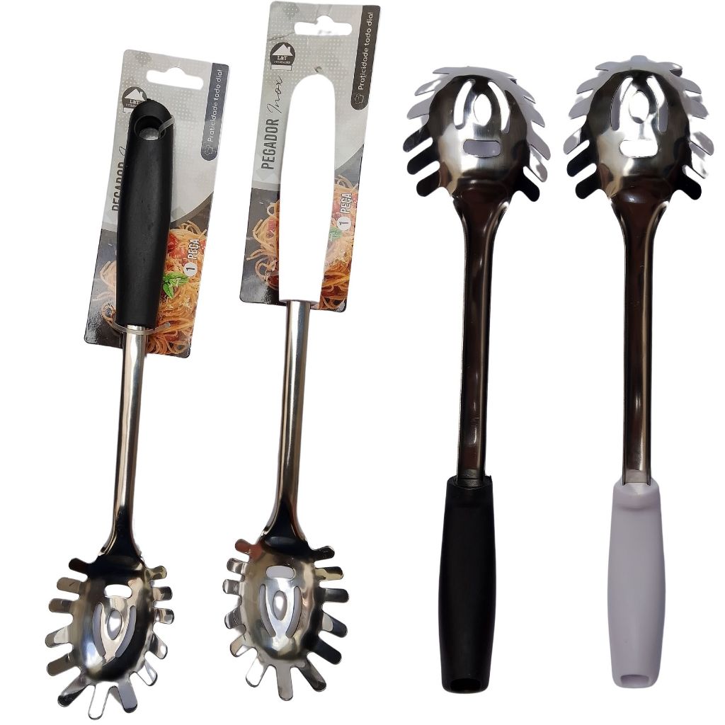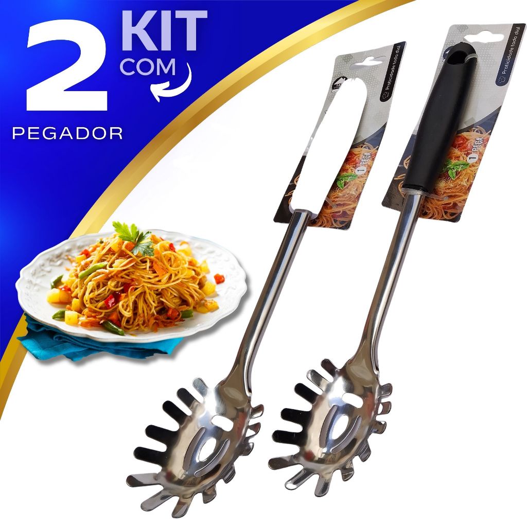 Pegador de Macarrão Inox Kit 2 Unidades Variadas Para Massa Cozinha Lanchonete Restaurante