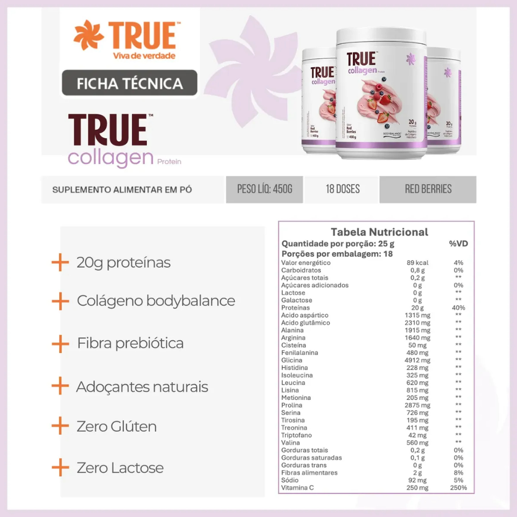 Collagen Protein Bodybalance Red Berries 450g True Source Sabor Frutas Vermelhas