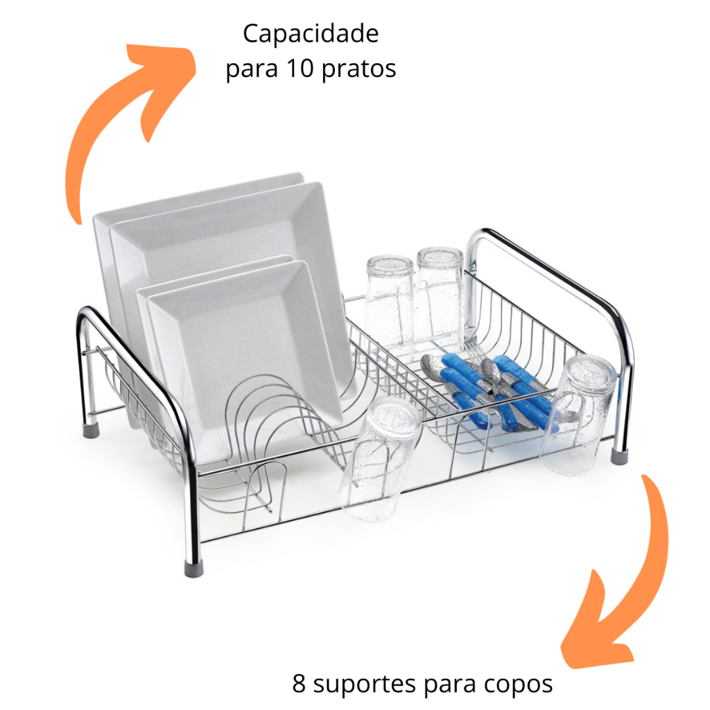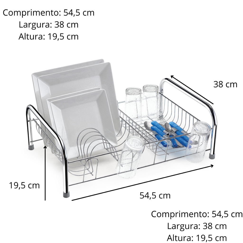 Escorredor de Louca Grande Maxximo Pratos Porta Talheres E Copo Pia Cozinha Bandeja Cromado Aço Inox