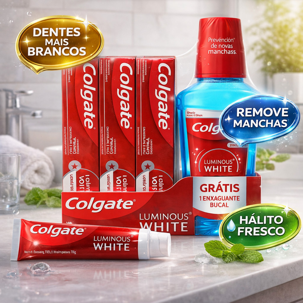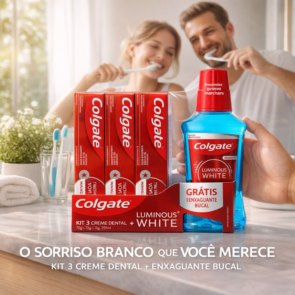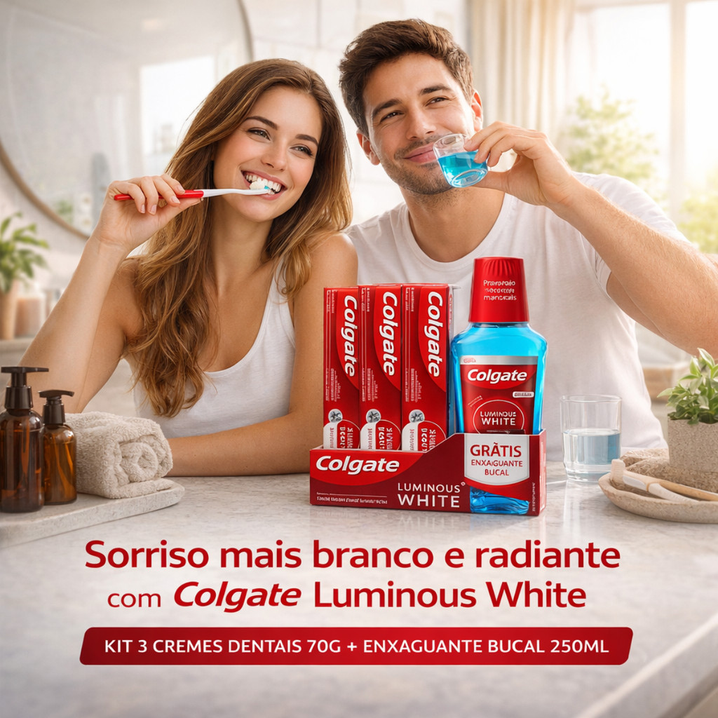 Kit Colgate Luminous White Com 3 Creme Dental + Enxaguante