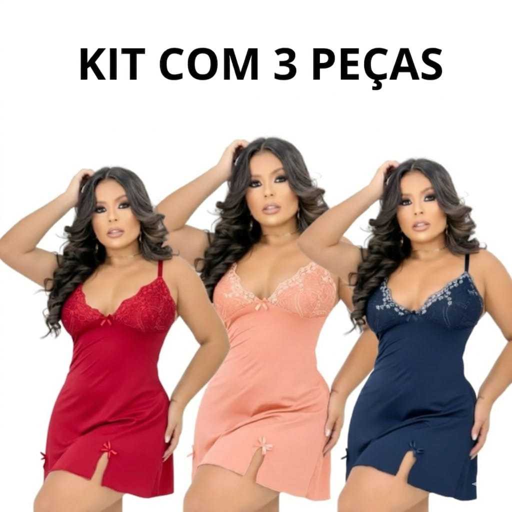 Kit com 3 Camisolas de Renda Feminina Conforto Sensualidade ajuste Perfeito Linda Alça com Regulagem