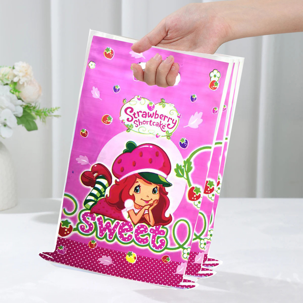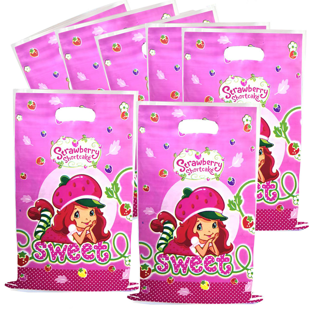 50 Pçs Novo Morango Doce Menina Temático Bolsa Sacos De Doces Saque Saco Festa De Aniversário Presente Embalagem Bebê Cr