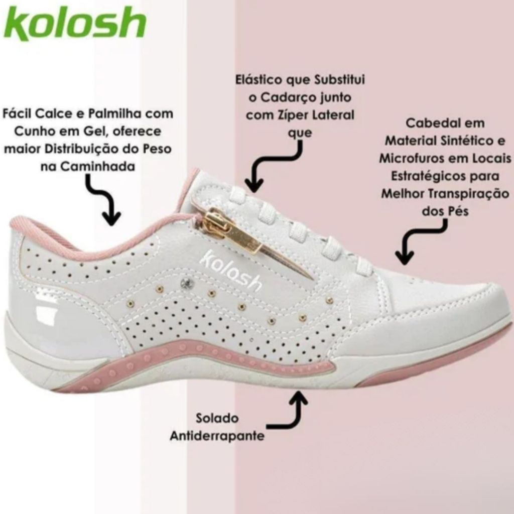 Tênis Feminino Kolosh C1299 Calce Fácil Palmilha Gel Confortável Casual