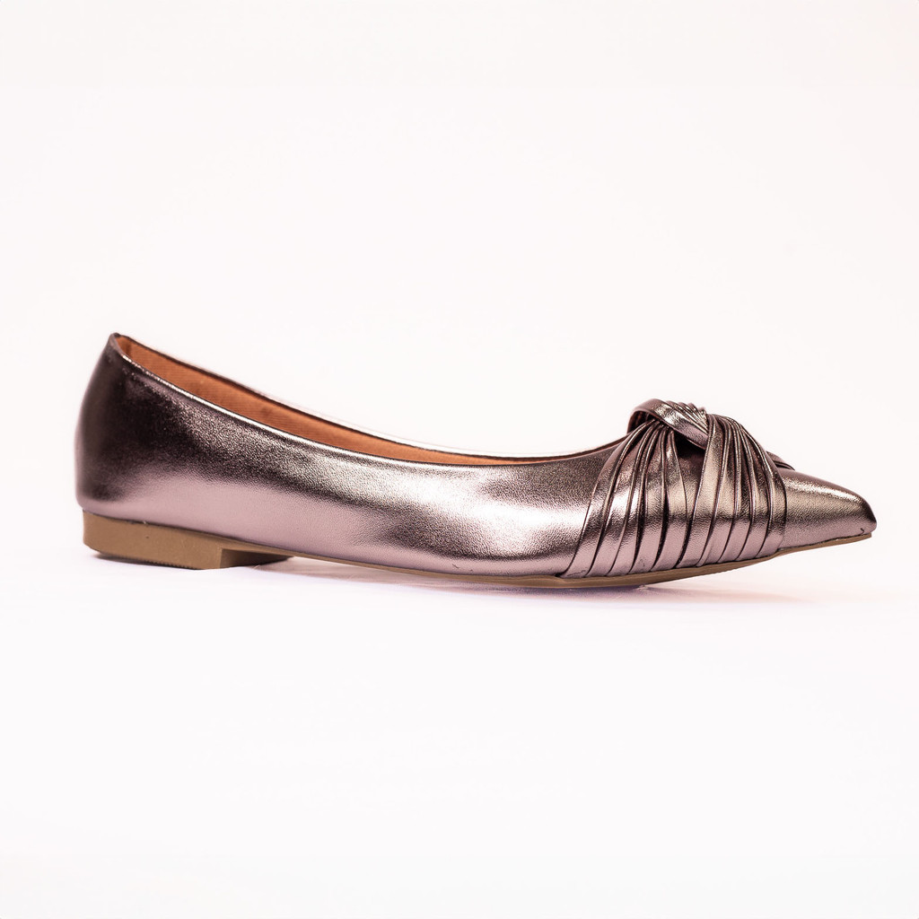 Sapatilha Feminina Napa Cinza Chumbo Enfeite Tiras 005X Bico Fino Sapato Casual Confort