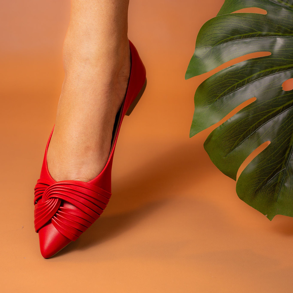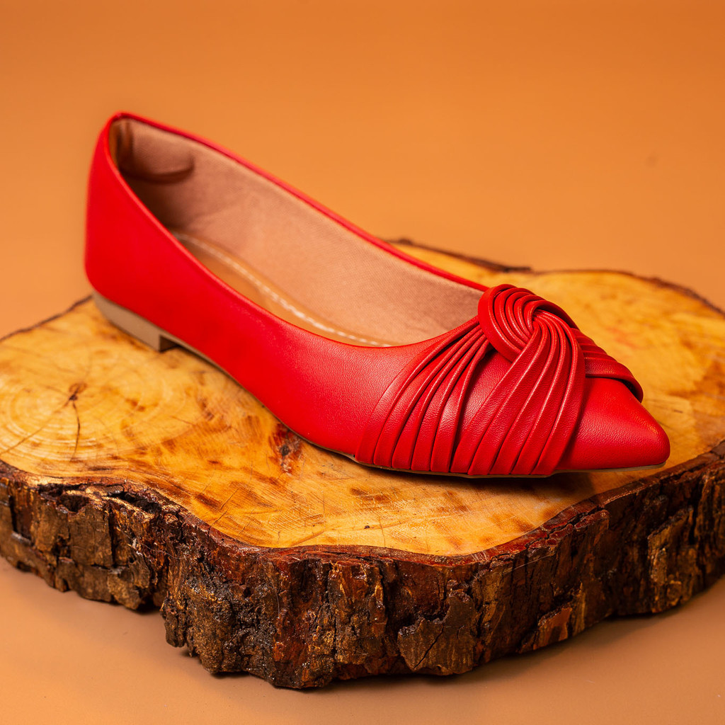 Sapatilha Feminina Napa Vermelho Enfeite Tiras 005X Bico Fino Sapato Casual Confort