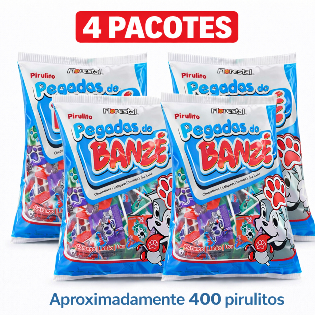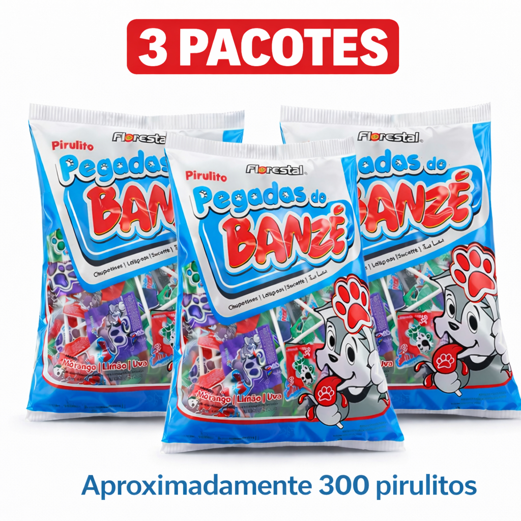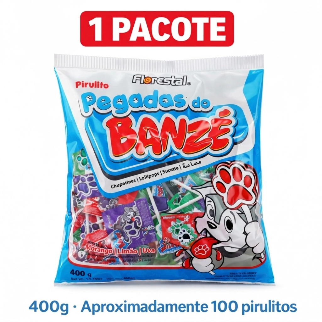 Pirulito Pegadas do Banzé Florestal 400g 100 Unidades Pirulito Festa Lembrancinha