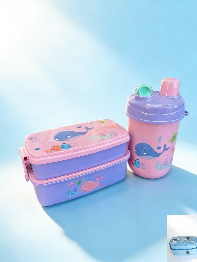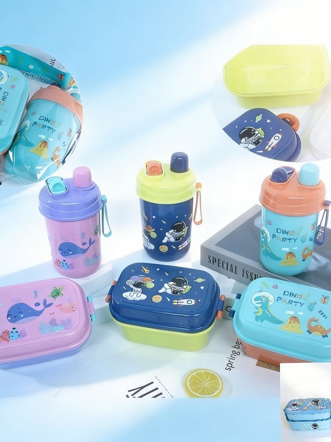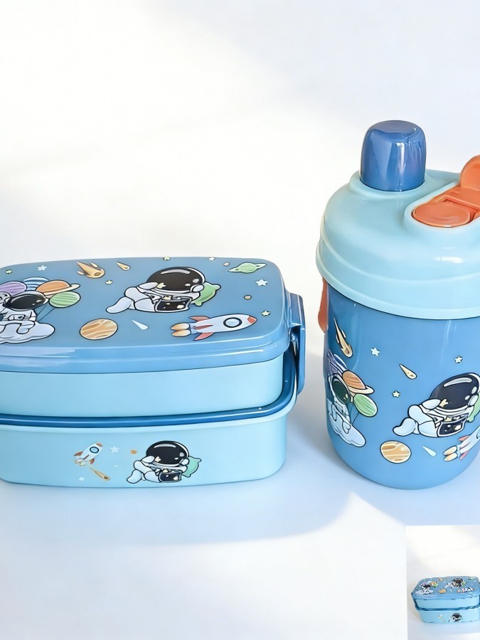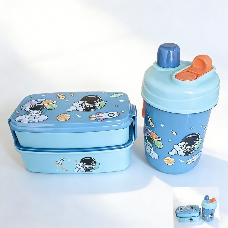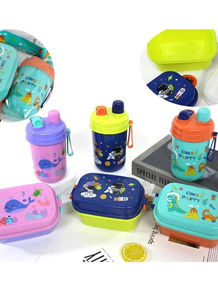 KIT Design Astronauta Azul - Baleia Rosa e Dinossauro Verde Marmita Lancheira Infantil+COPO