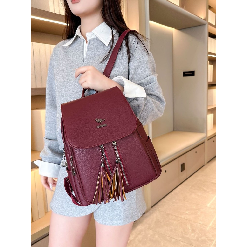 Mochila Feminina Média De Qualidade De Costas Em Couro Sintético cangurus S2319 TM