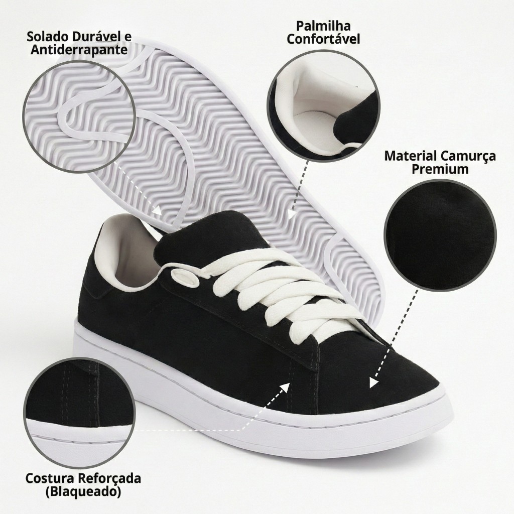 Tênis Feminino Camurça Estilo Skate – Ideal para Quem Curte Conforto e Personalidade