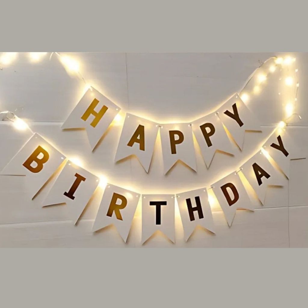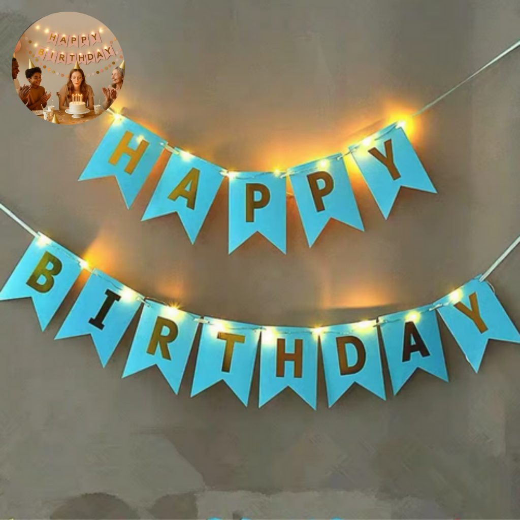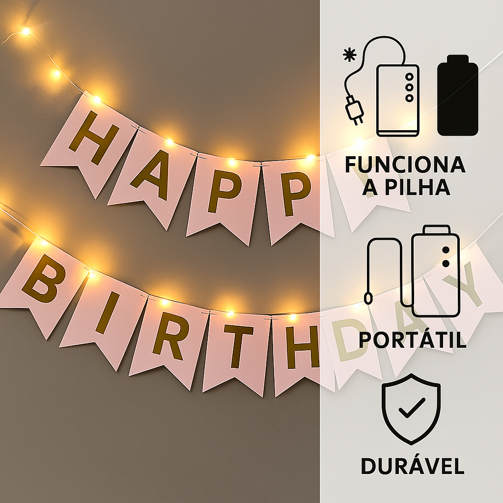 Bandeira Varal Happy Birthday Faixa C/ Luz de Led Feliz Aniversário