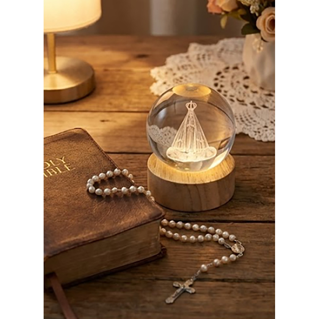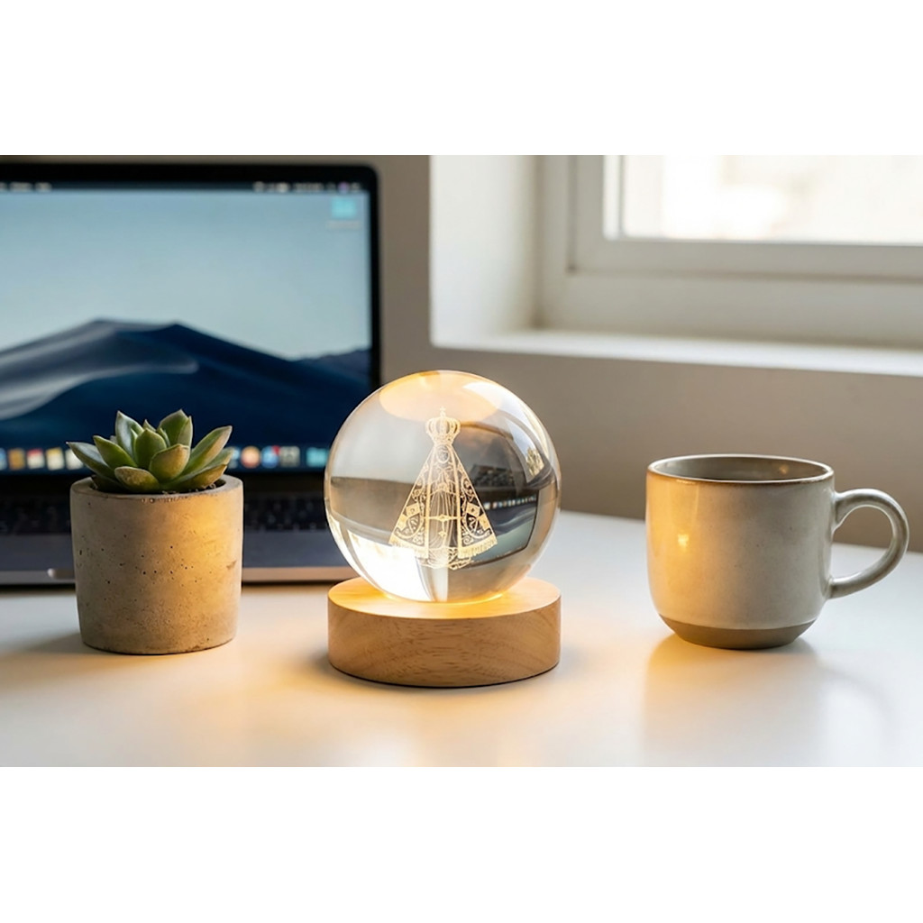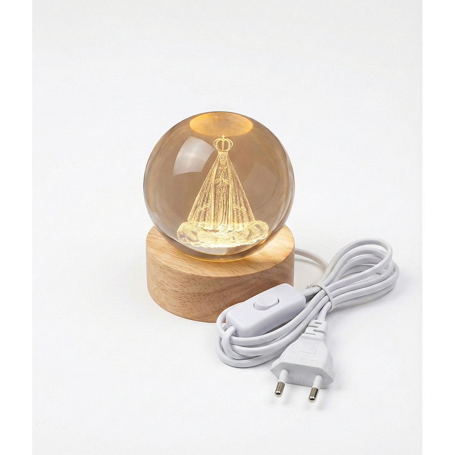 Abajur Nossa Senhora Aparecida Cristal Laser 3D - Luz LED Quente Tomada Padrão Brasil Decoração