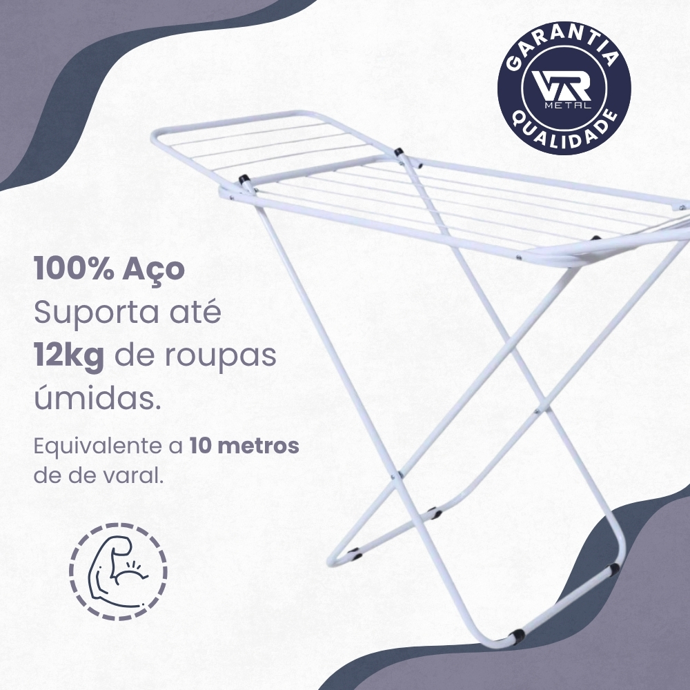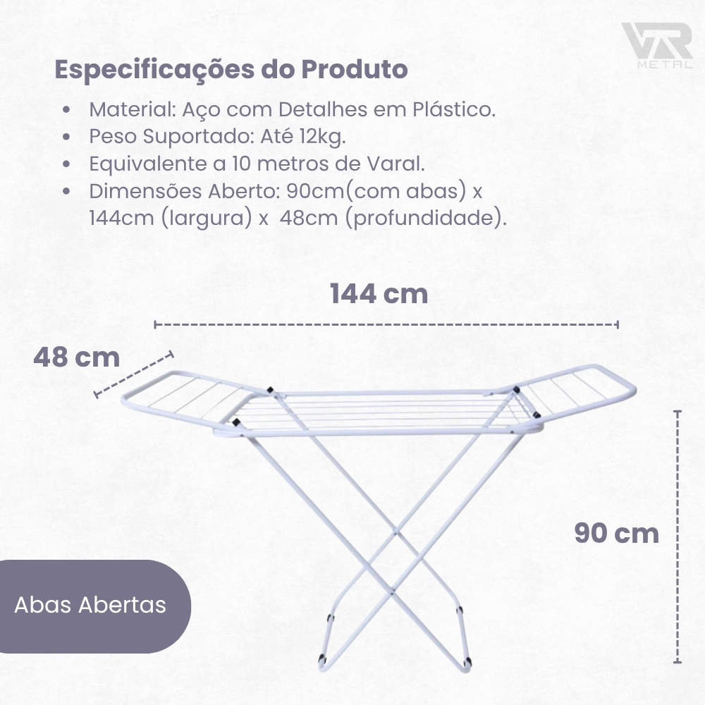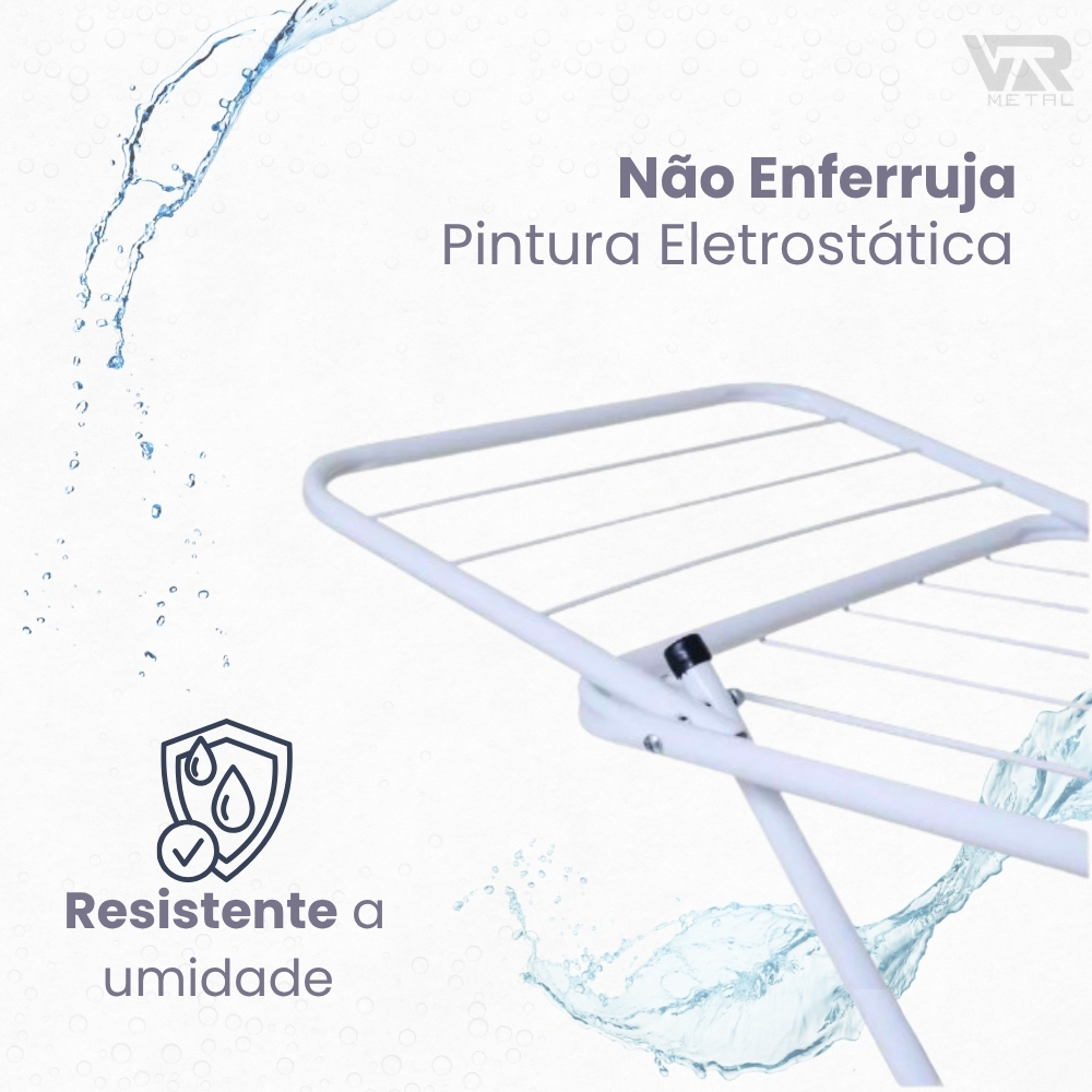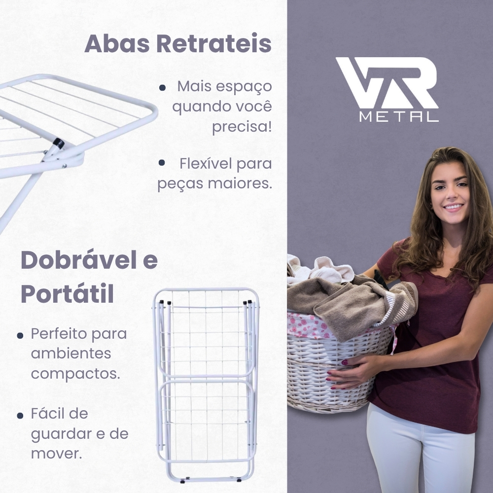 Varal Dobrável de Chão com Abas | Super Leve, Resistente e Não Enferruja | Pintura Eletrostática