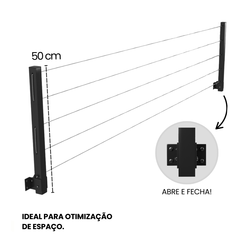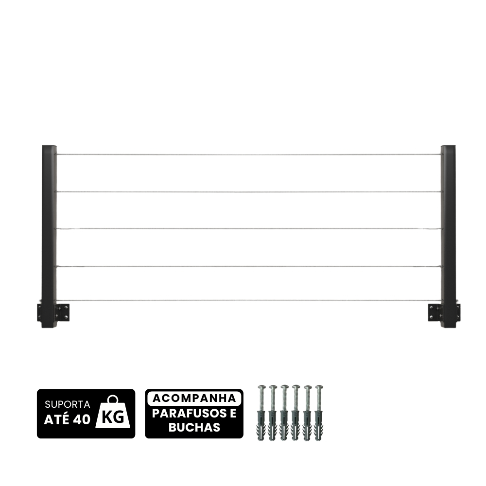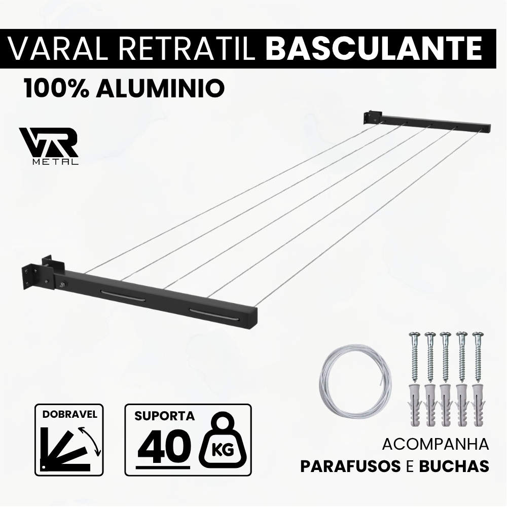 Varal Retrátil Dobrável De Parede Em Alumínio Cabo De Aço Encapado Suporta 40 Kgs ENVIO IMEDIATO