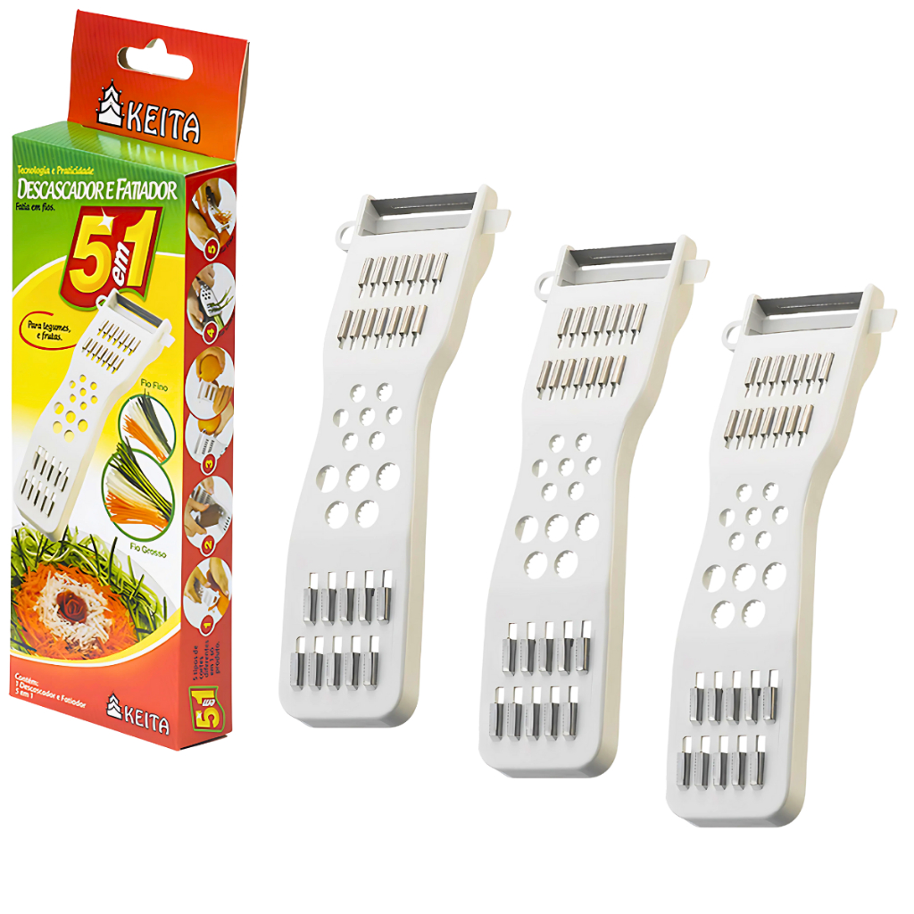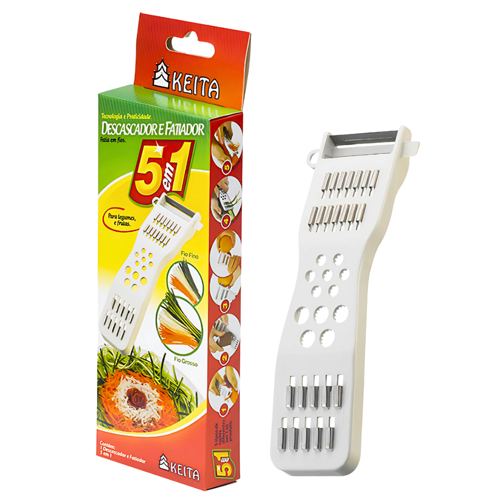 Kit Ralador Descascador 5 Em 1 Fatiador Legumes Verduras Frutas Keita