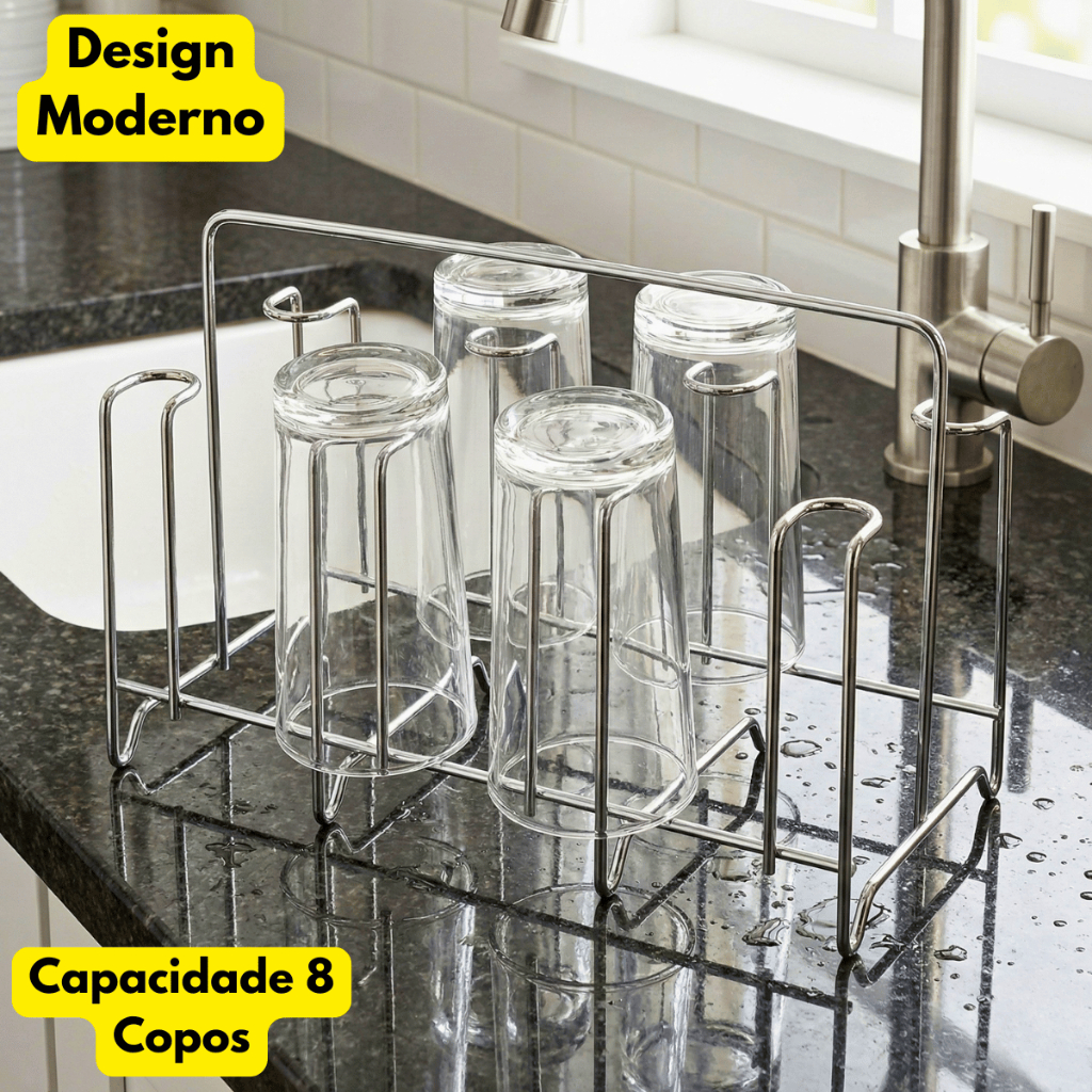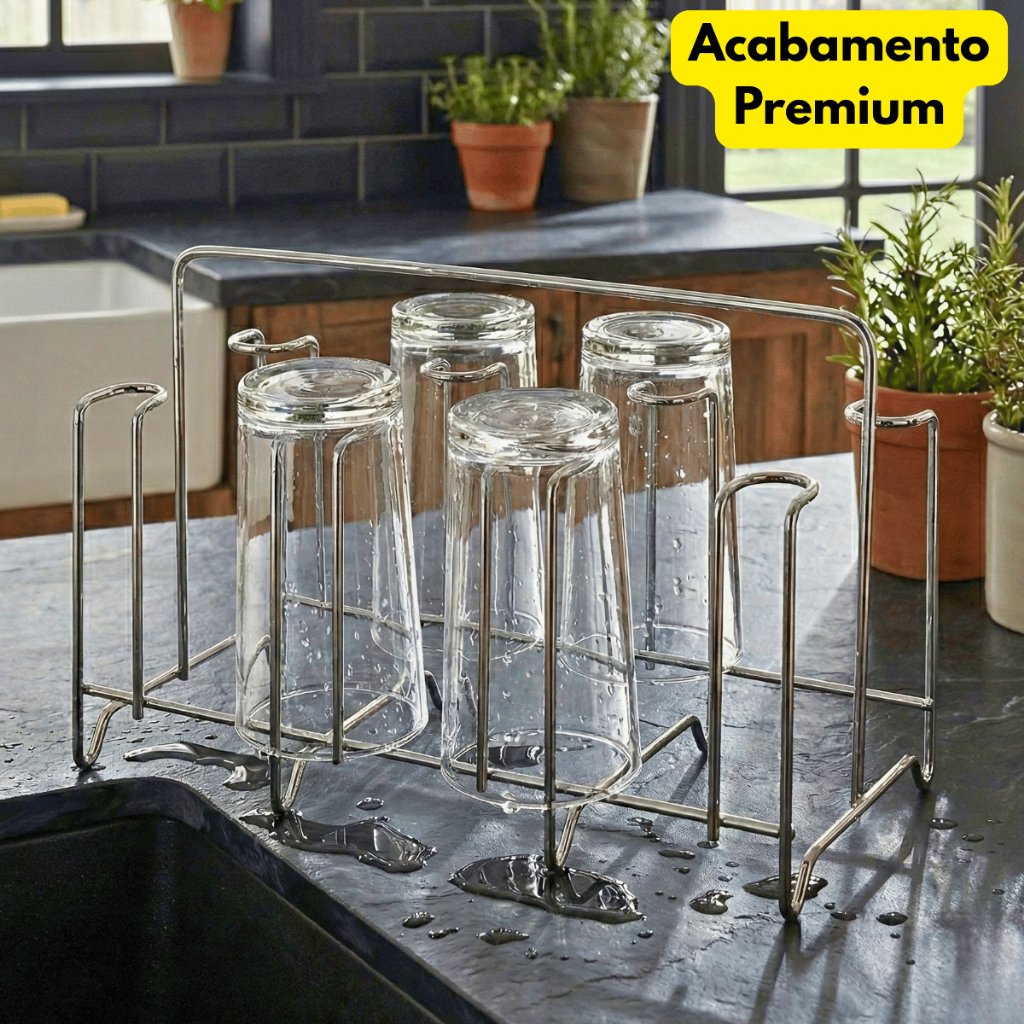 Porta Copos Escorredor 8 Copos Cromado Cozinha