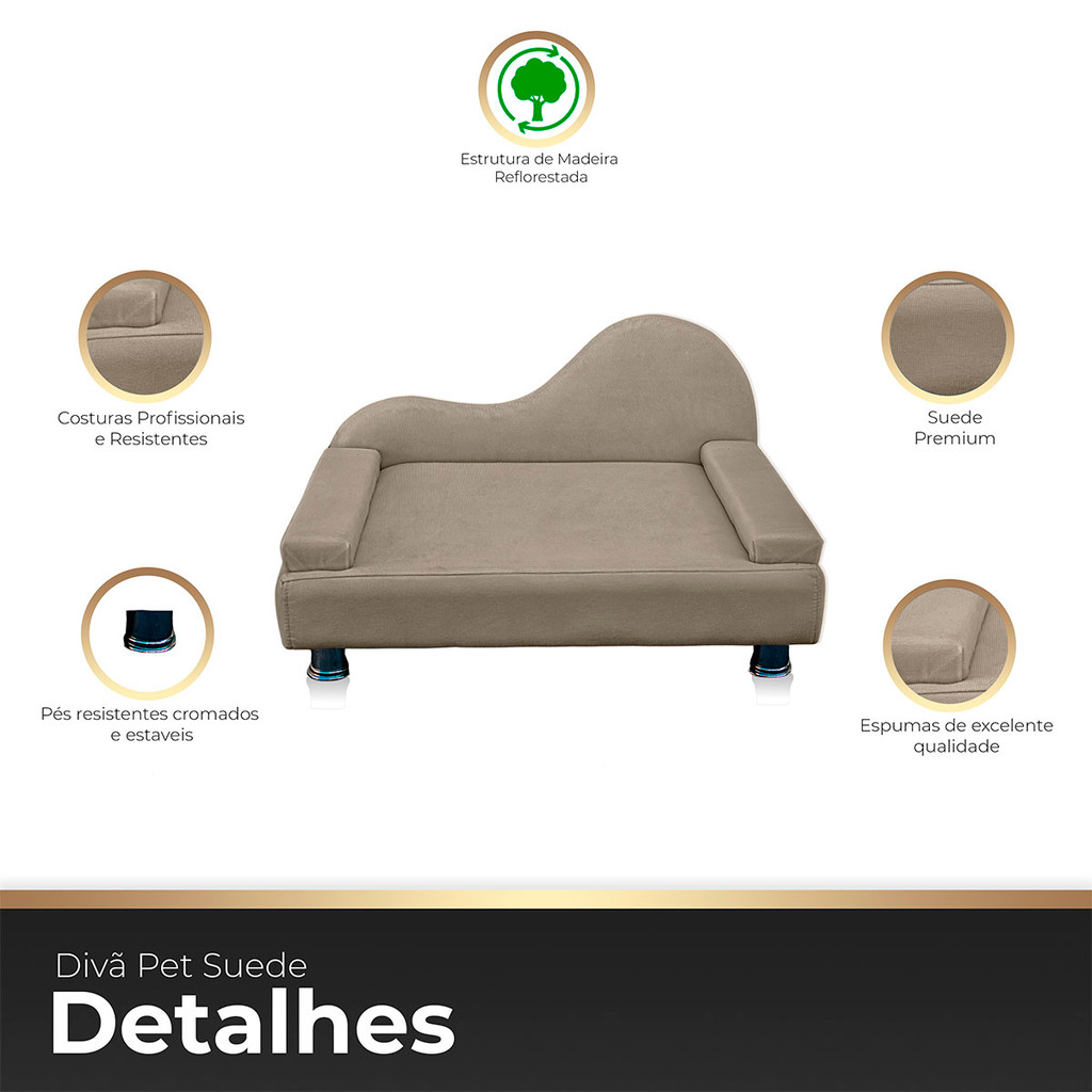 Mini Sofá Cama Divã Pet Cães e Gatos Orgânico Confortável e Reforçado Suede