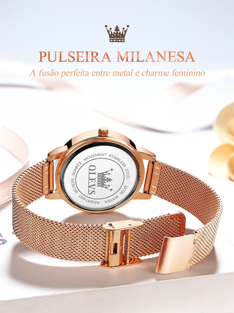Olevs relógio de pulso feminino delicado Fashion Pulseira Milanesa a prova d água original quartzo relogio coreano 5530