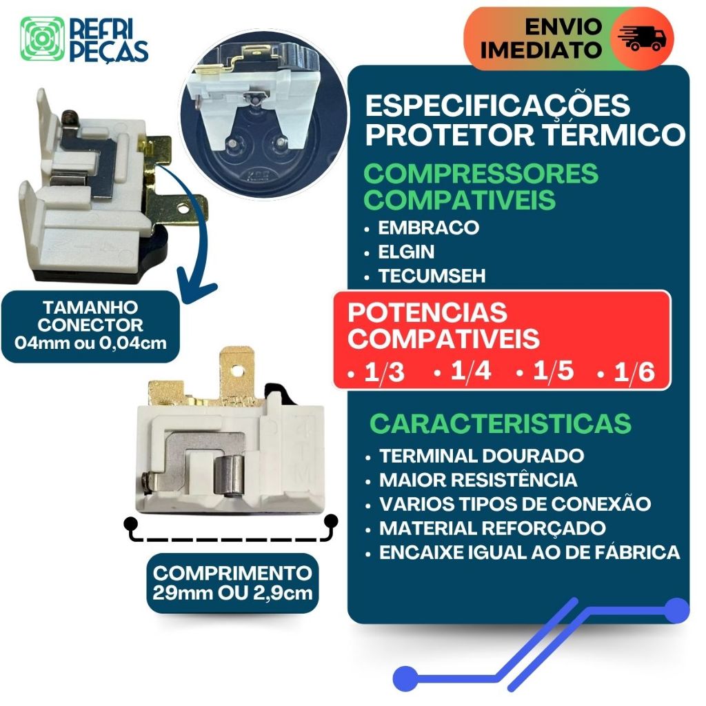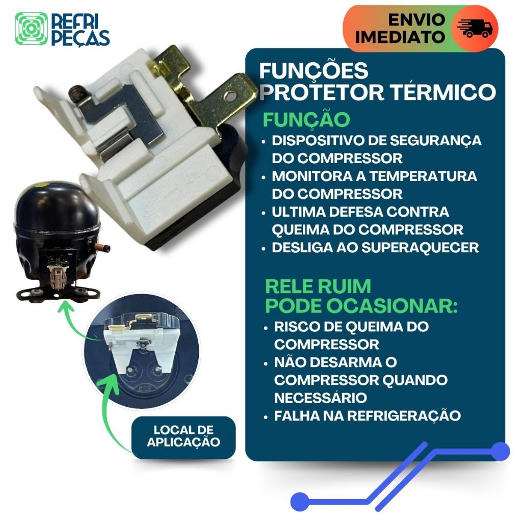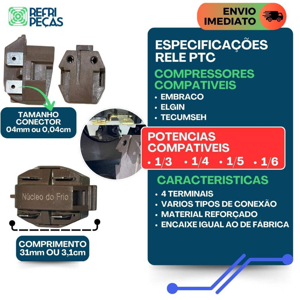 KIT RELE PTC E PROTETOR TÉRMICO UNIVERSAL COMPRESSOR EMBRACO TECUMSEH ELGIN 127V-110V 1/3 a 1/6