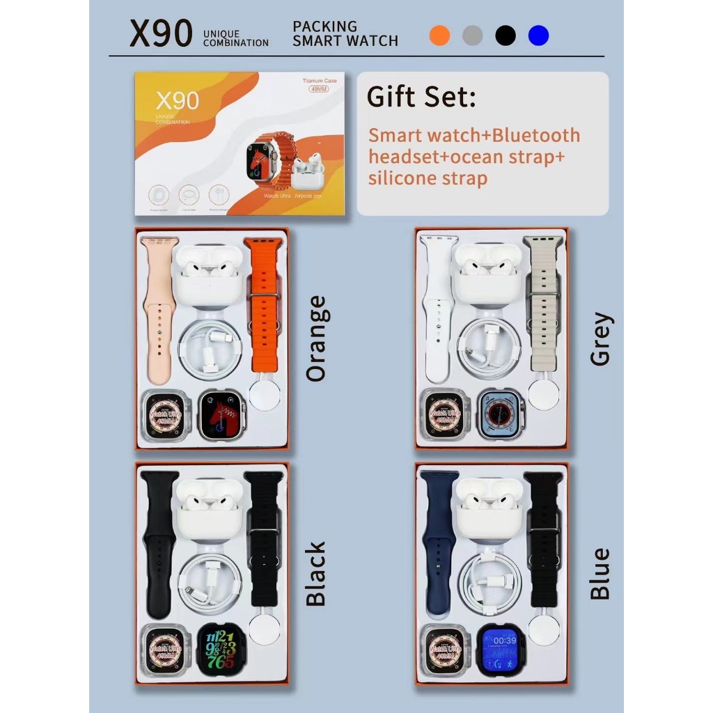 Smartwatch 2025 Novo X90 2.2 Polegadas Para IOS Android Completo 7 em 1 I15 TWS