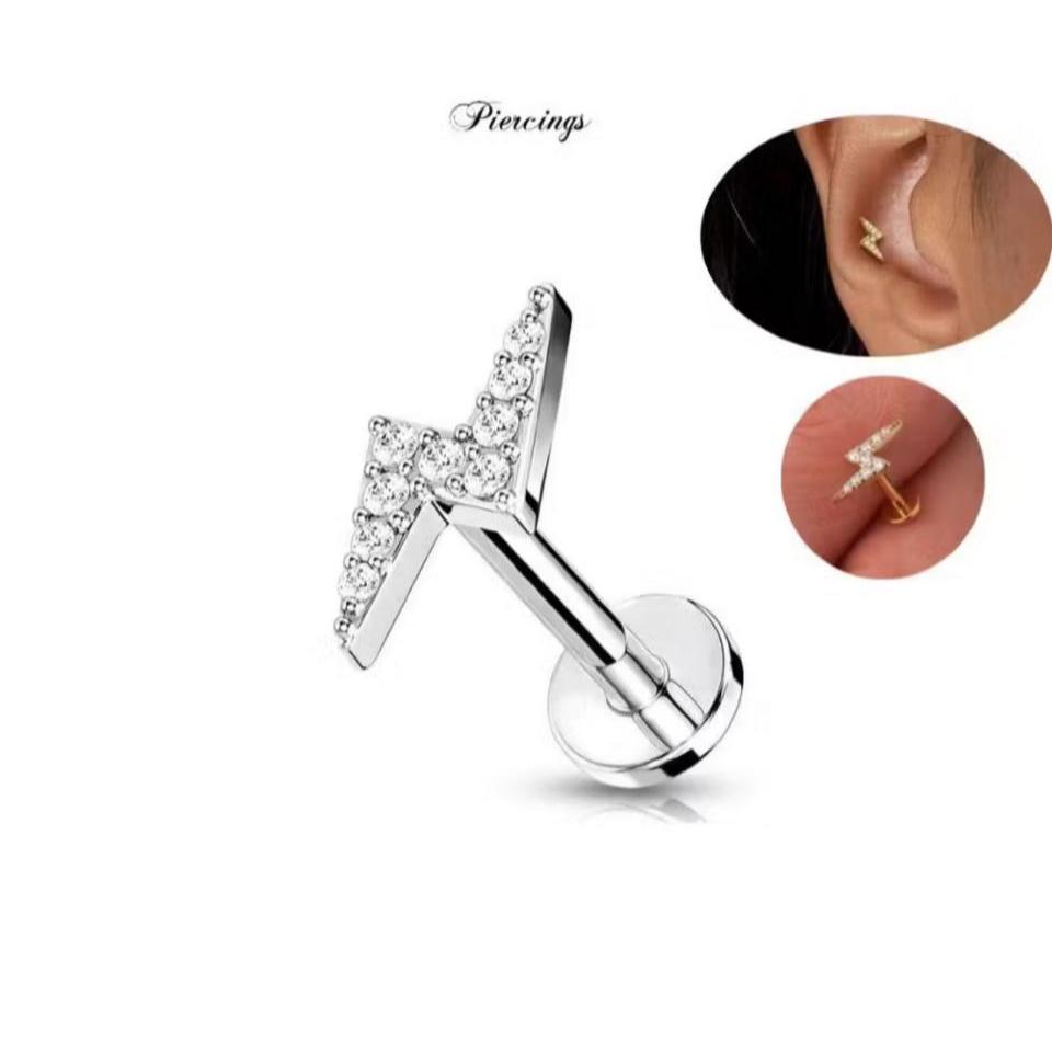 ⚡Piercing Tragus Rayo Cravejado Aço Cirúrgico Antialérgico Unissex – Não Escurece