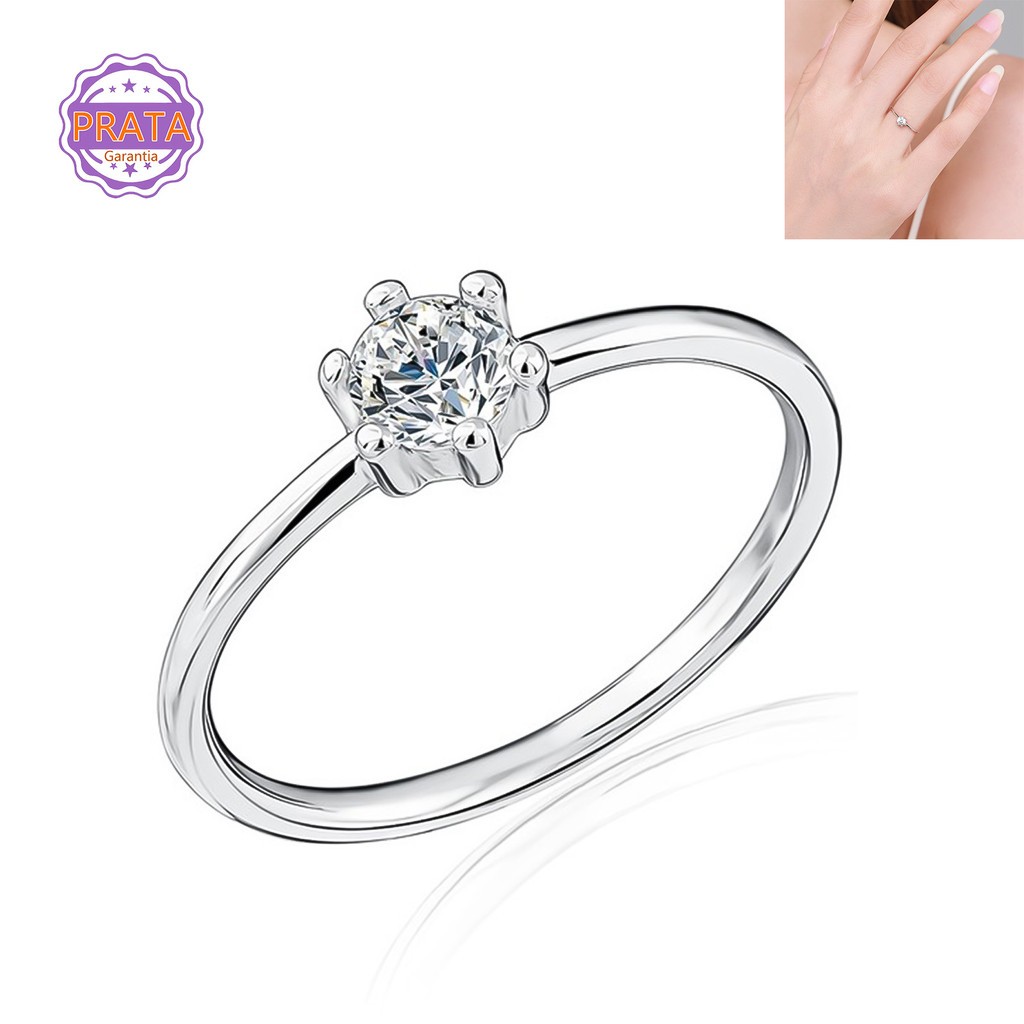 Anel Solitário Prata 925 Detalhado Com Zircônias Cravejado Feminino Vários Tamanhos Presente e Namoro