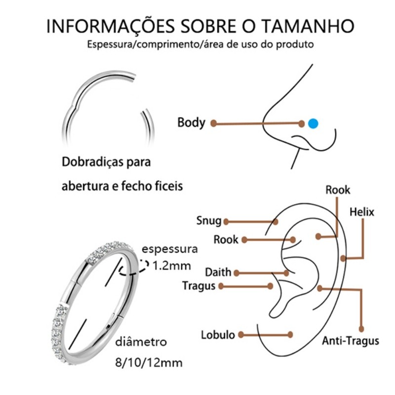 Piercing Nariz Argola Prata 925 Zircônia Circular Cravejada Completa Lateral | Orelha Septo Rook Daith Conch