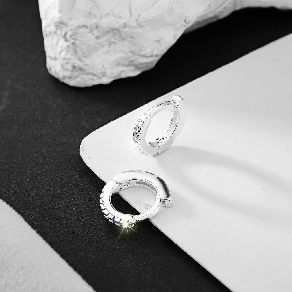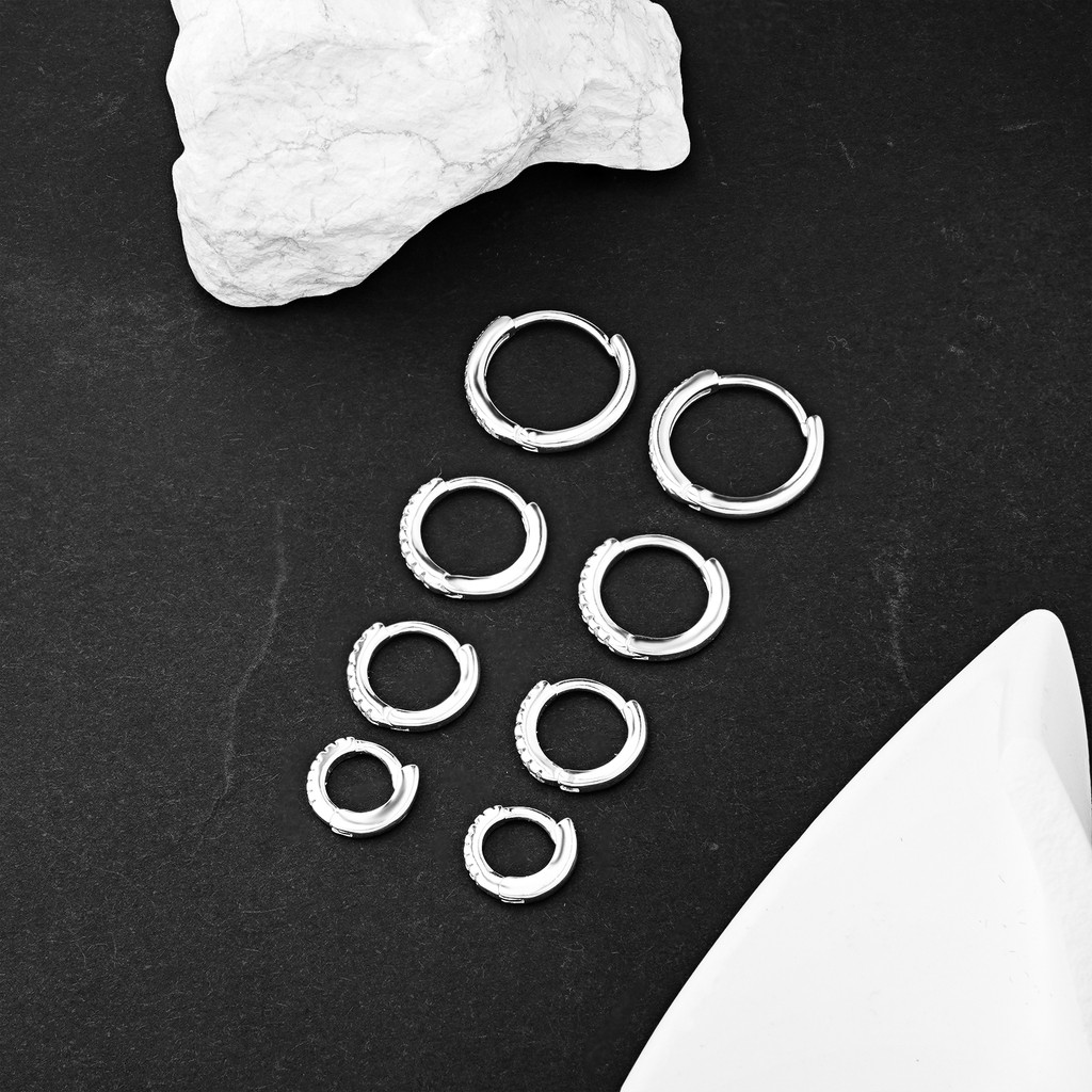 kit Brinco Prata 925 Zircônias Cravejado Argola Click Cravejado Diversos Tamanhos Feminino Brincos Elegantes Legítimo