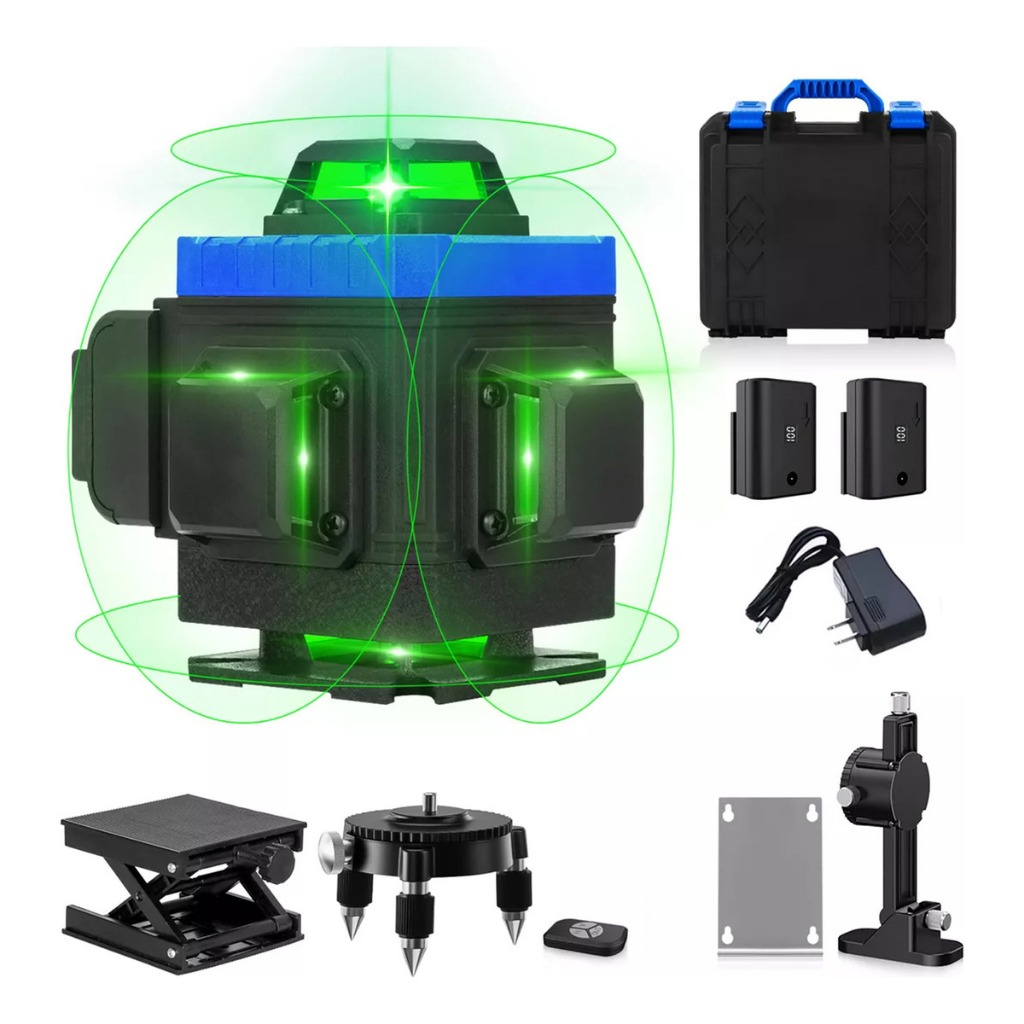 Nível De Laser Verde 4D De 16 Linhas Com Suporte E Duas Baterias