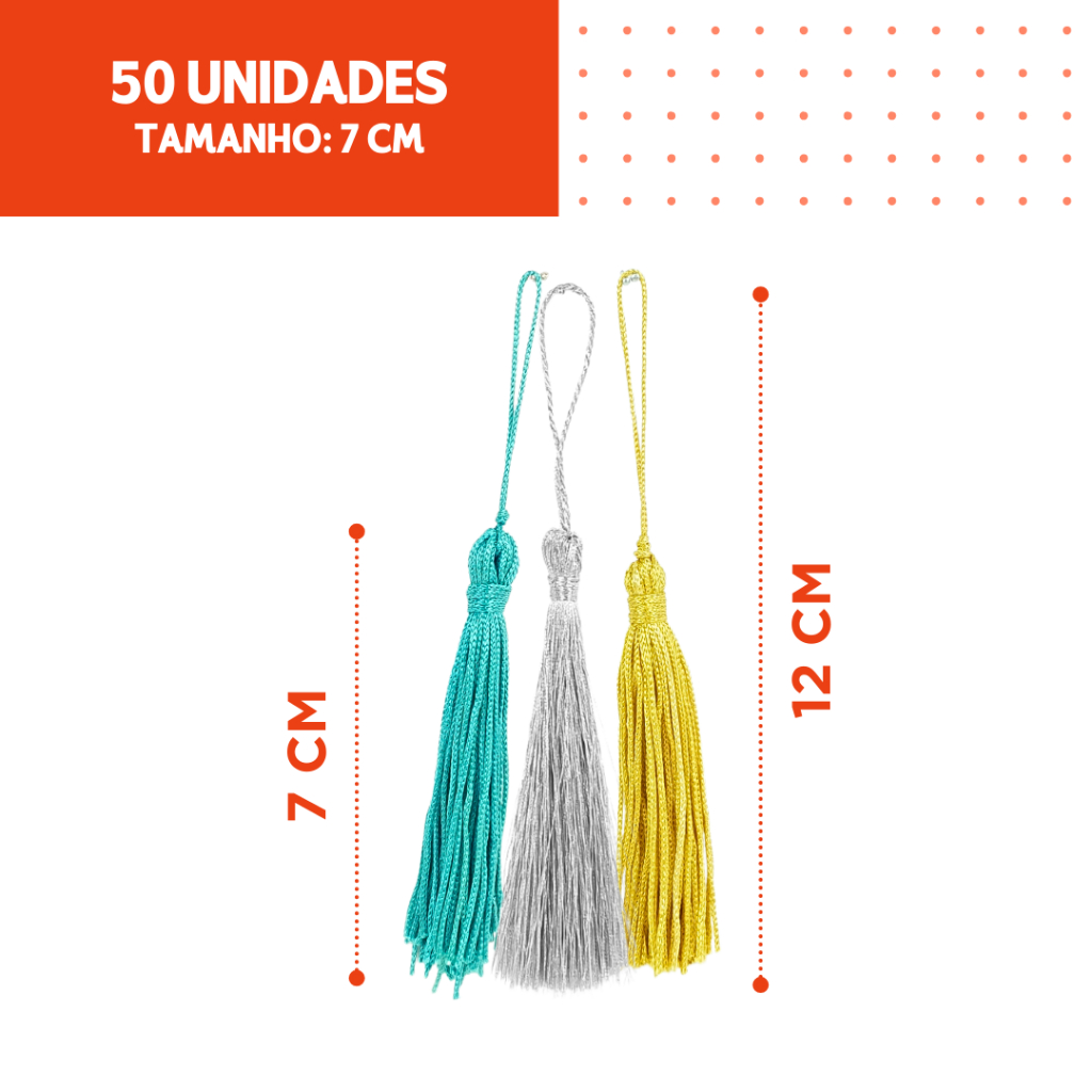 Pingente De Seda Tassel 7 Cm - Franja - Pacote Com 50 Unidades - Diversas Cores - MN