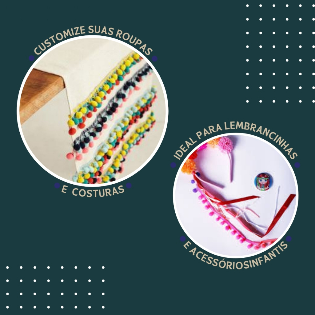 Fita Pompom 10mm Passamanaria C/25 Metros | Ideal Para Acabamento Decorativo Laços e Artesanato - MN