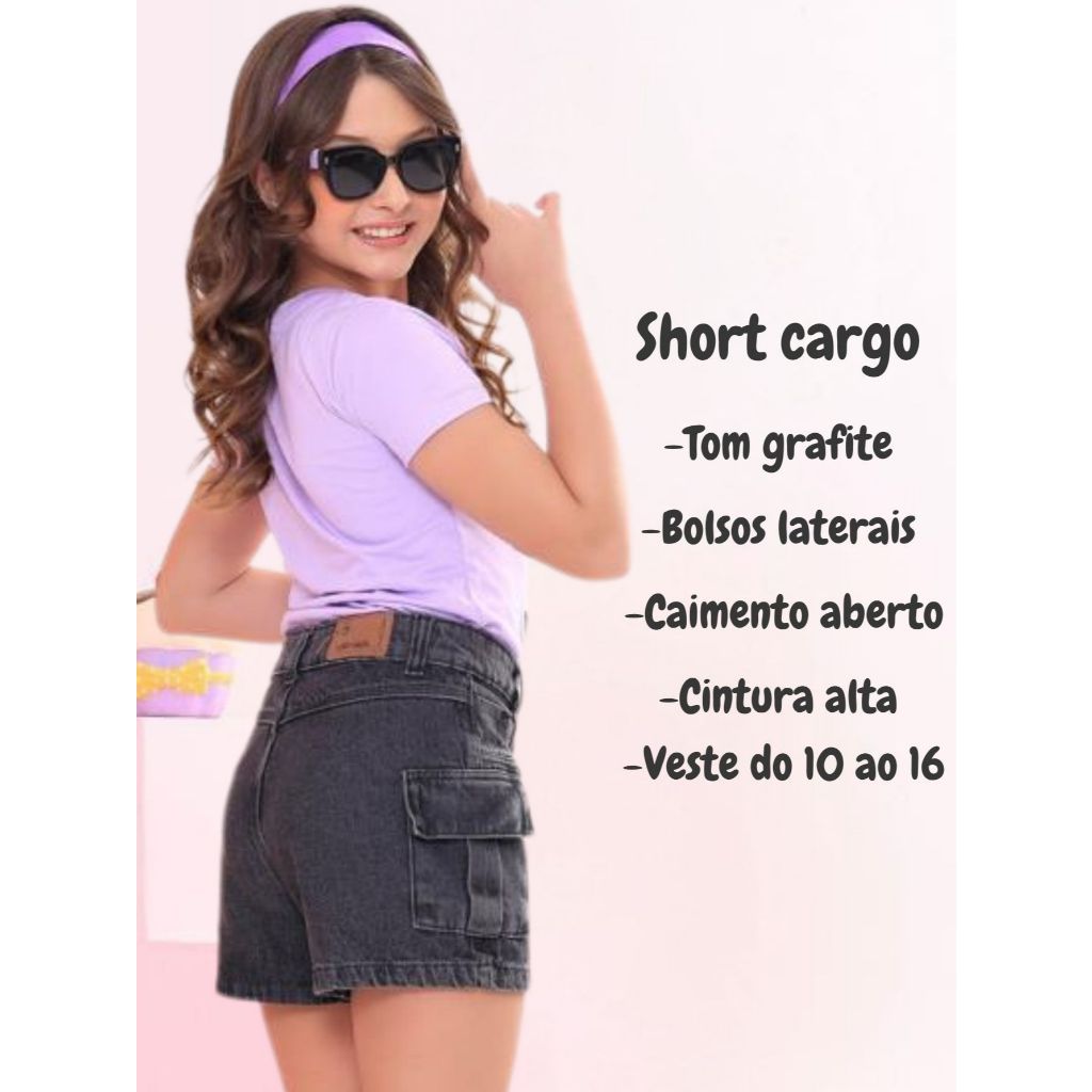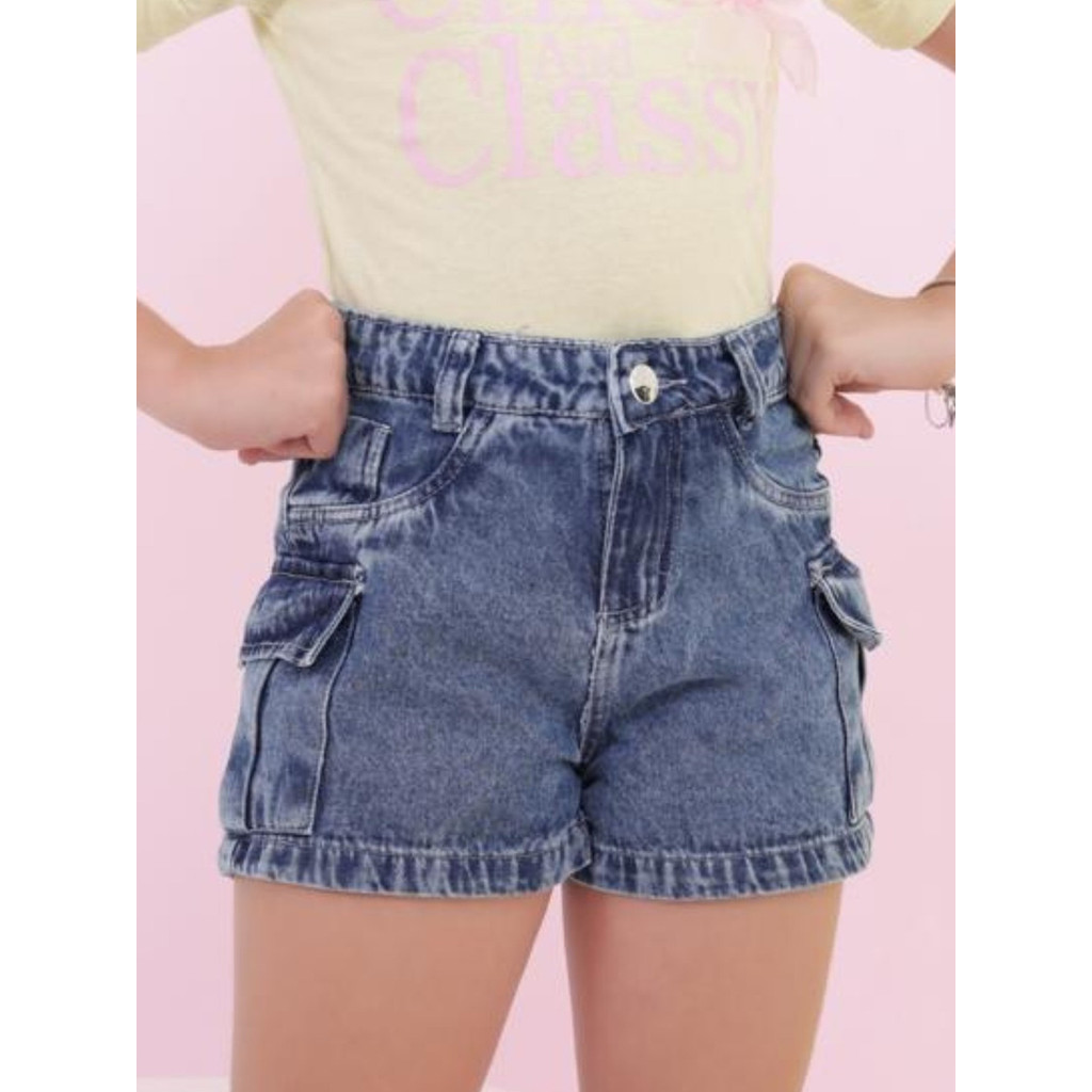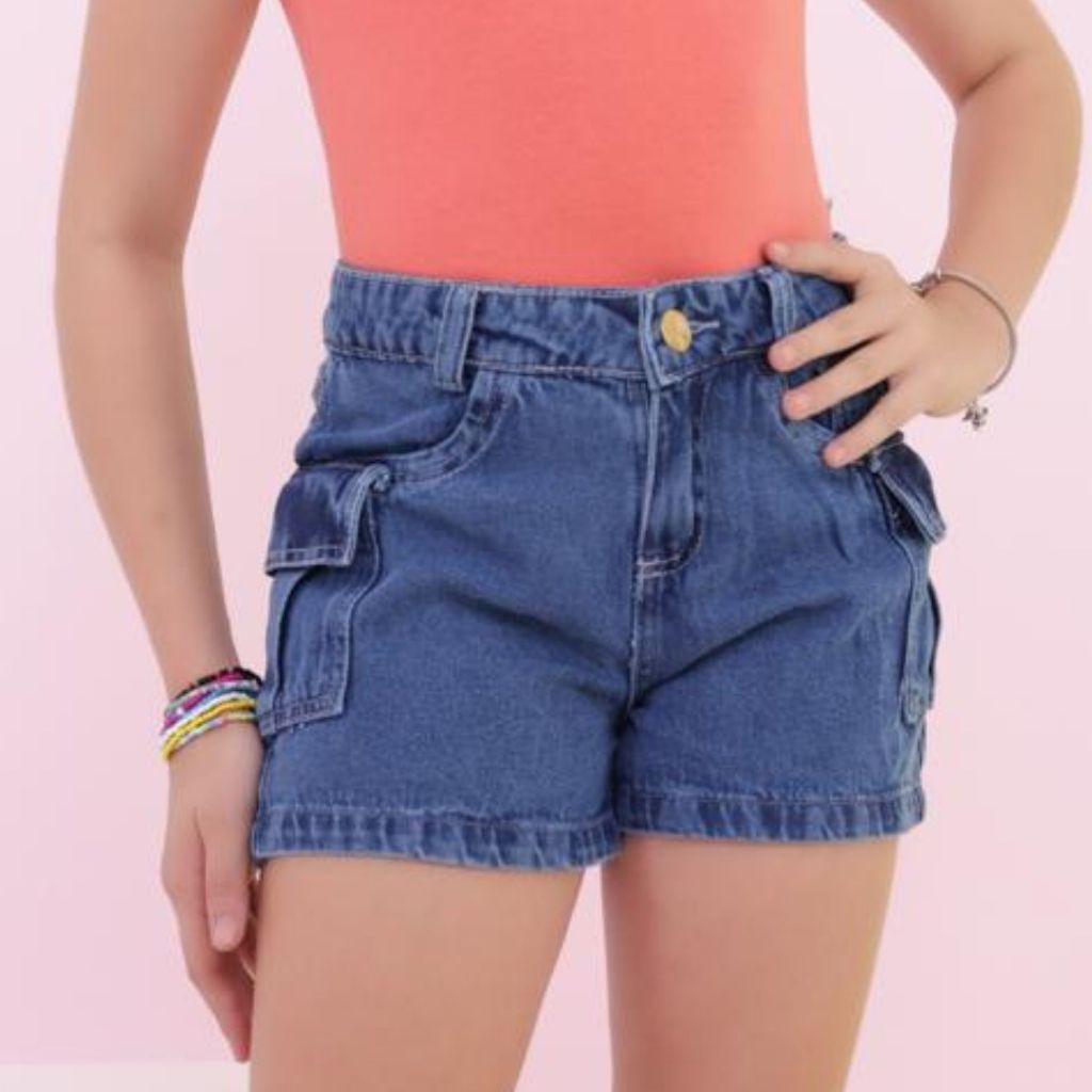 Short Cargo Jeans Juvenil Bermuda Menina Infantil Premium Bolso Laterais