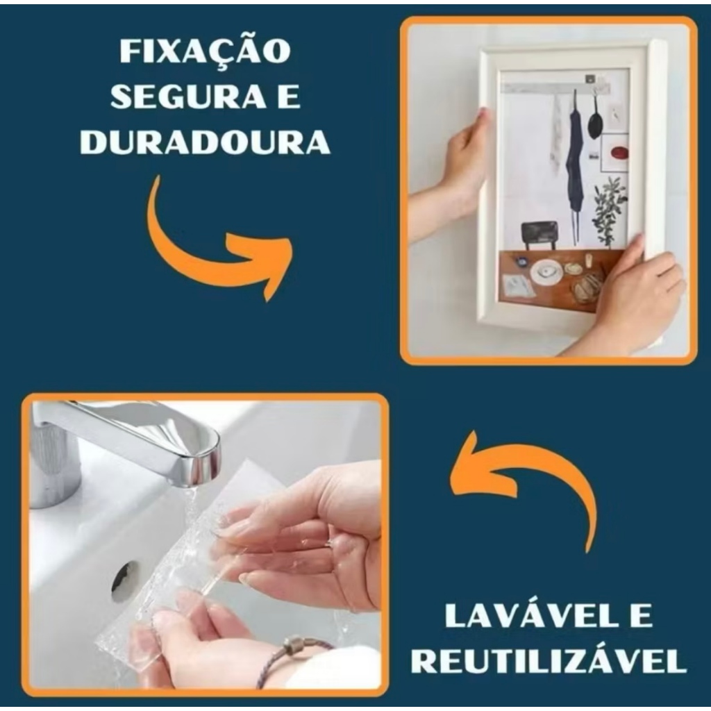 Fita Dupla Face Transparente NanoGel 5M Kit 2 – Extra Forte, Reutilizável, Adesiva Mágica de Silicone para Parede, Porta