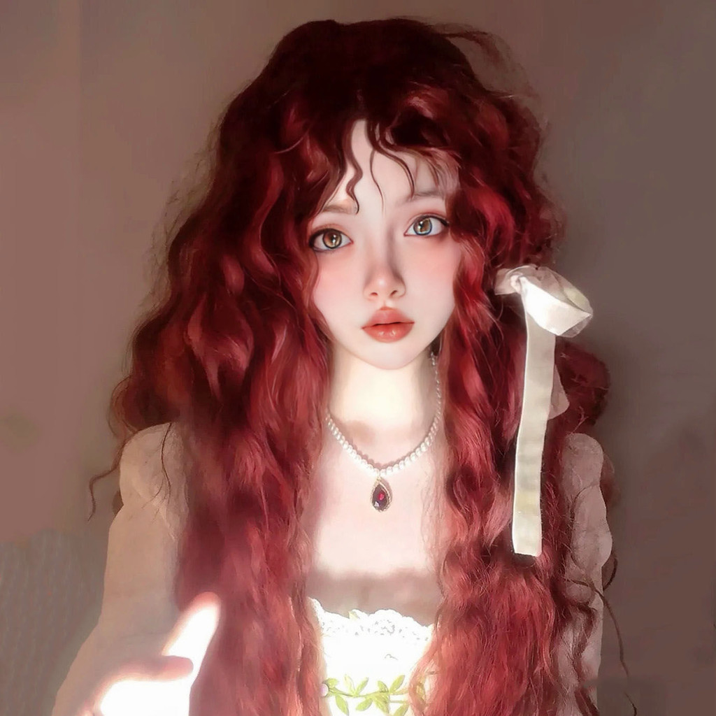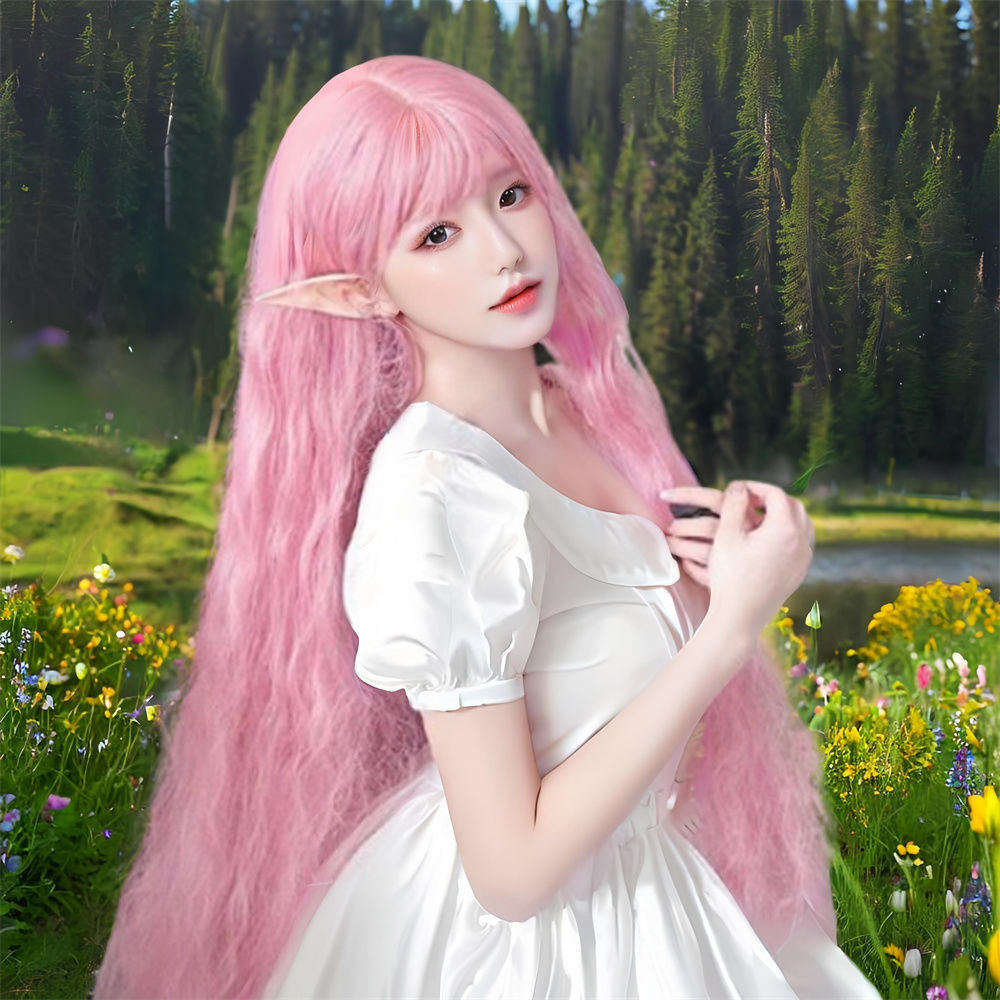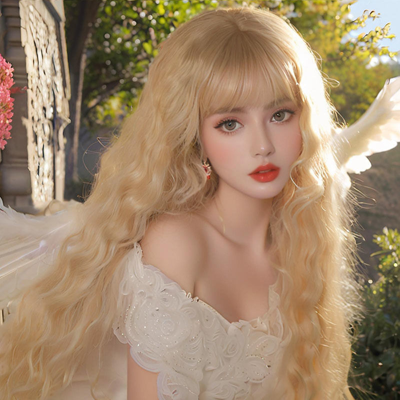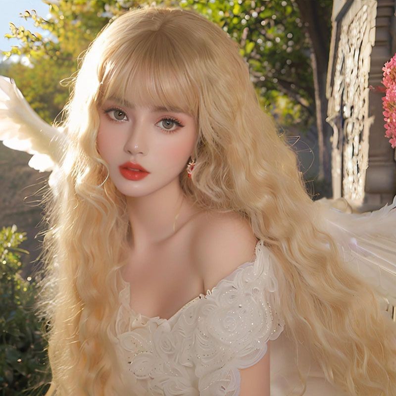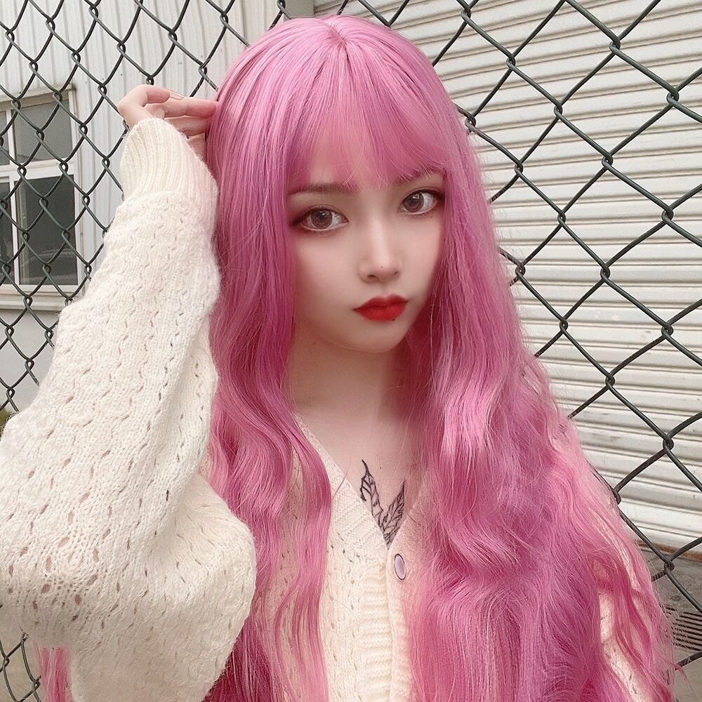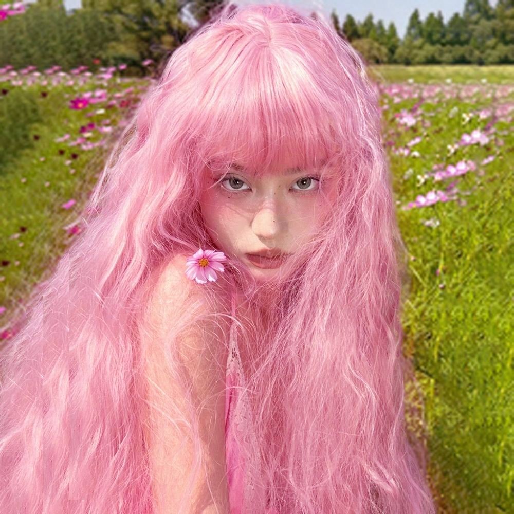 Novo produto pronto estoque lolita longo cabelo encaracolado peruca diária feminino milho Perm cos rolo de lã luz rosa m