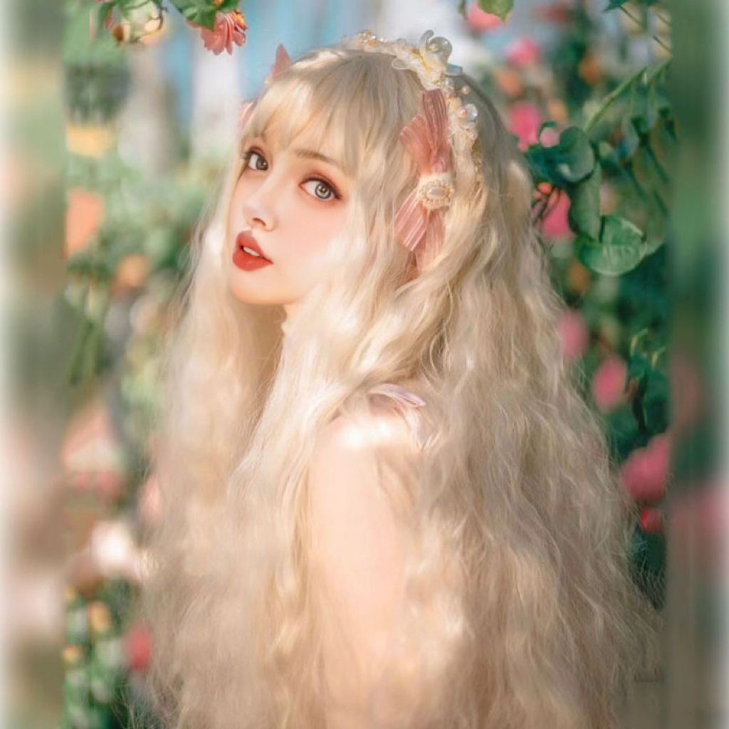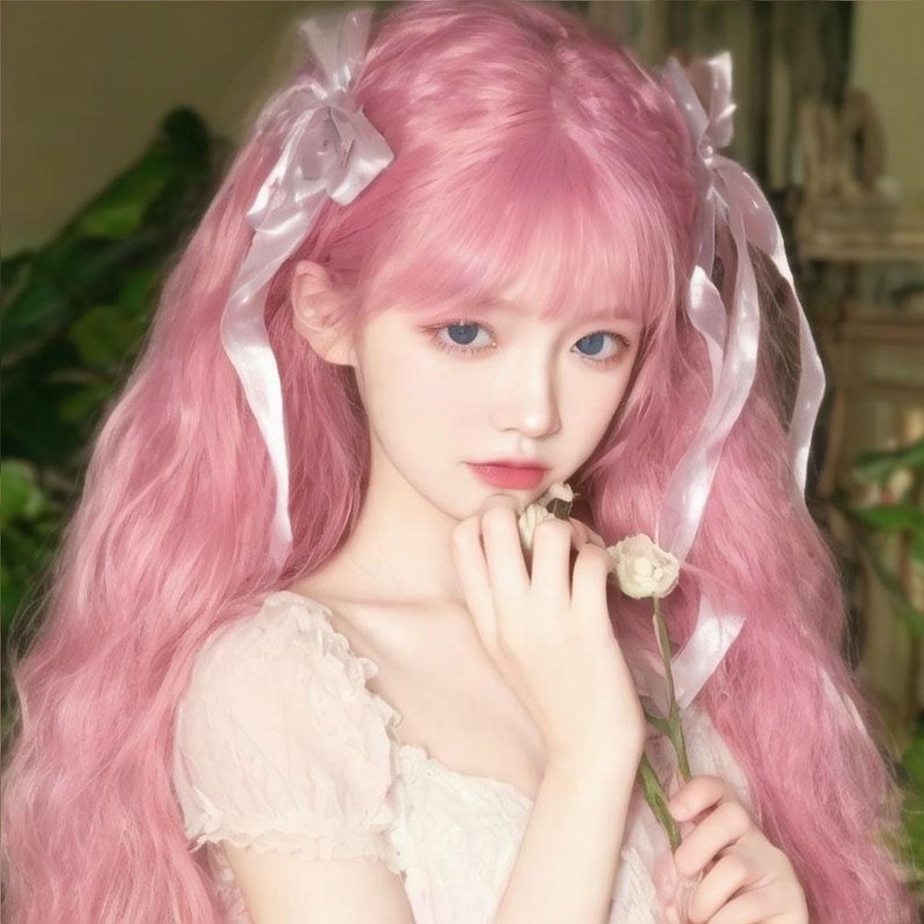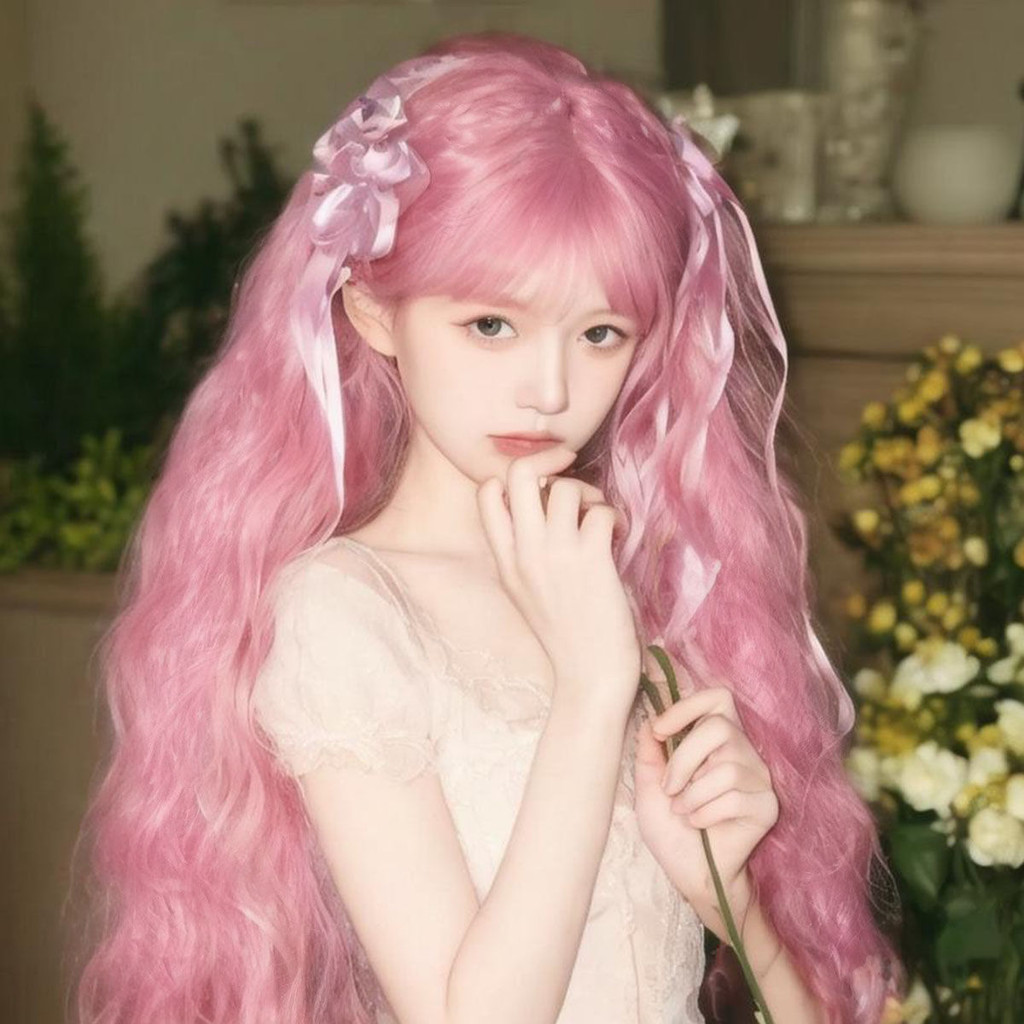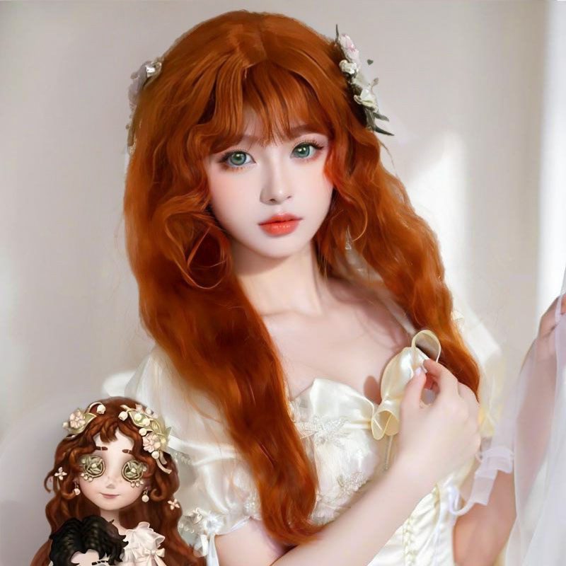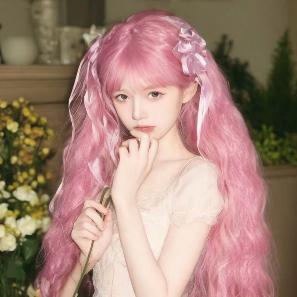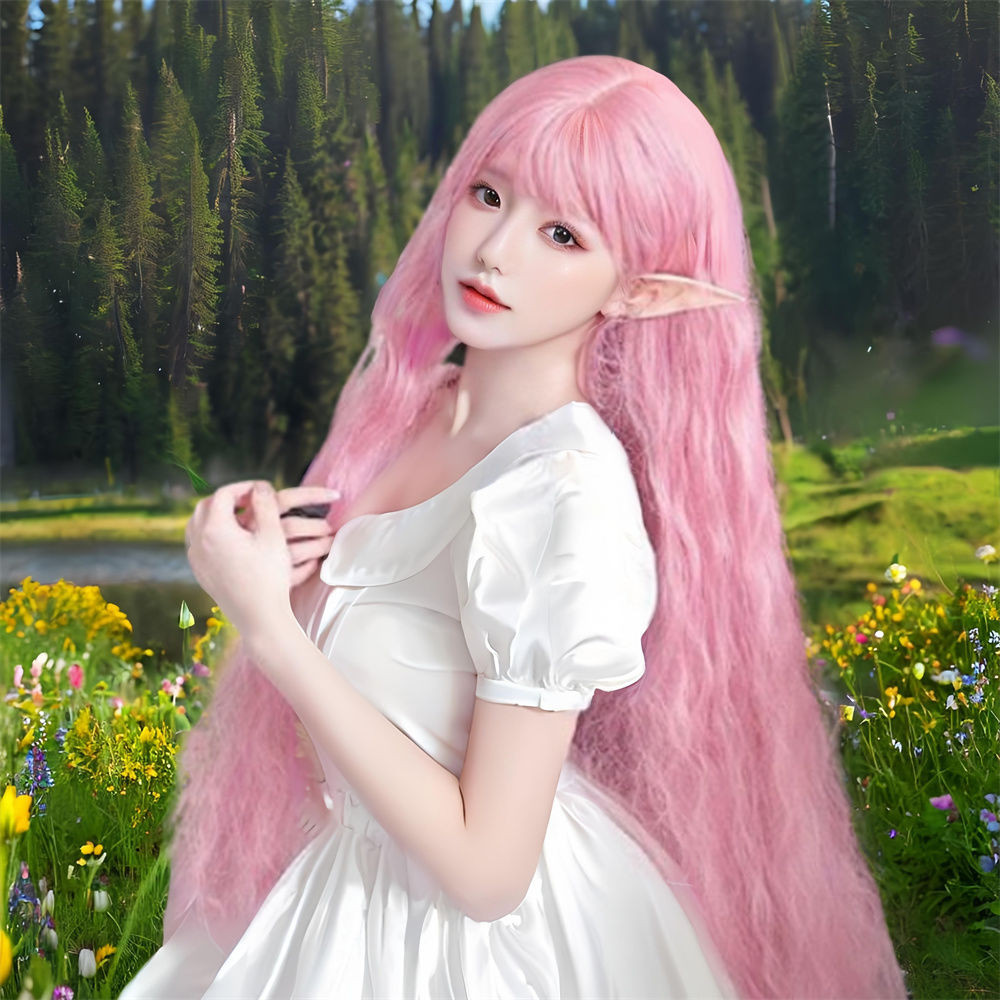 Novo produto pronto estoque lolita longo cabelo encaracolado peruca diária feminino milho Perm cos rolo de lã luz rosa m