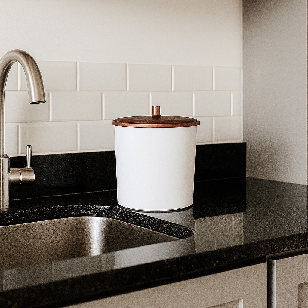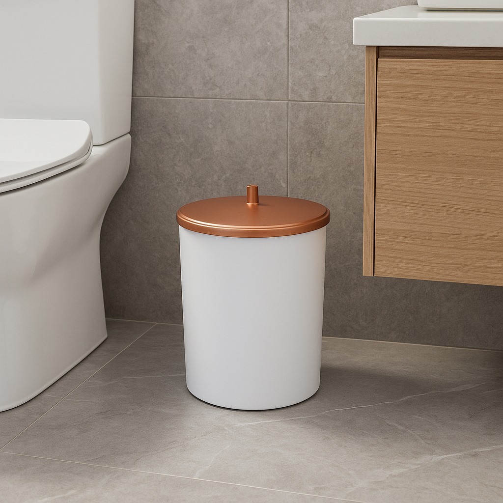 Lixeira de Cozinha Banheiro Escritório 5 Litros Branca Tampa Rose Gold