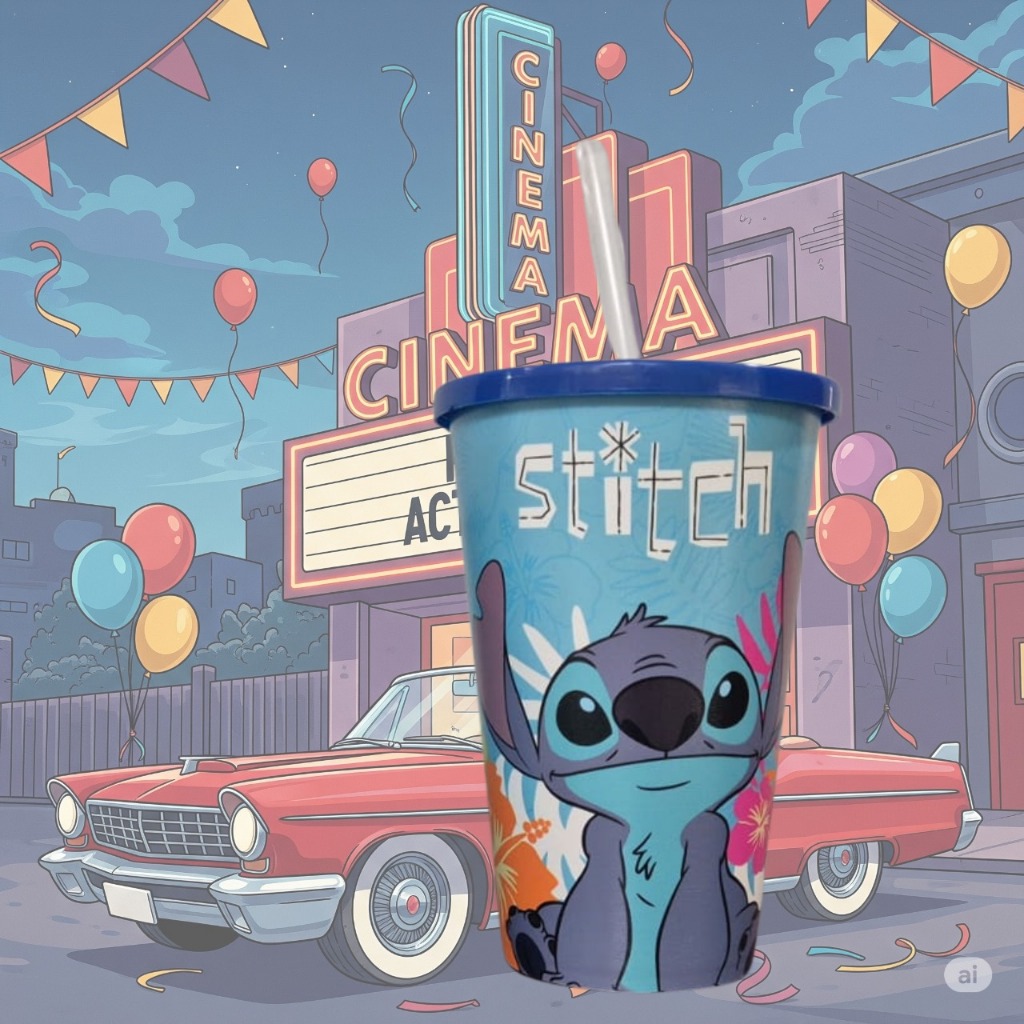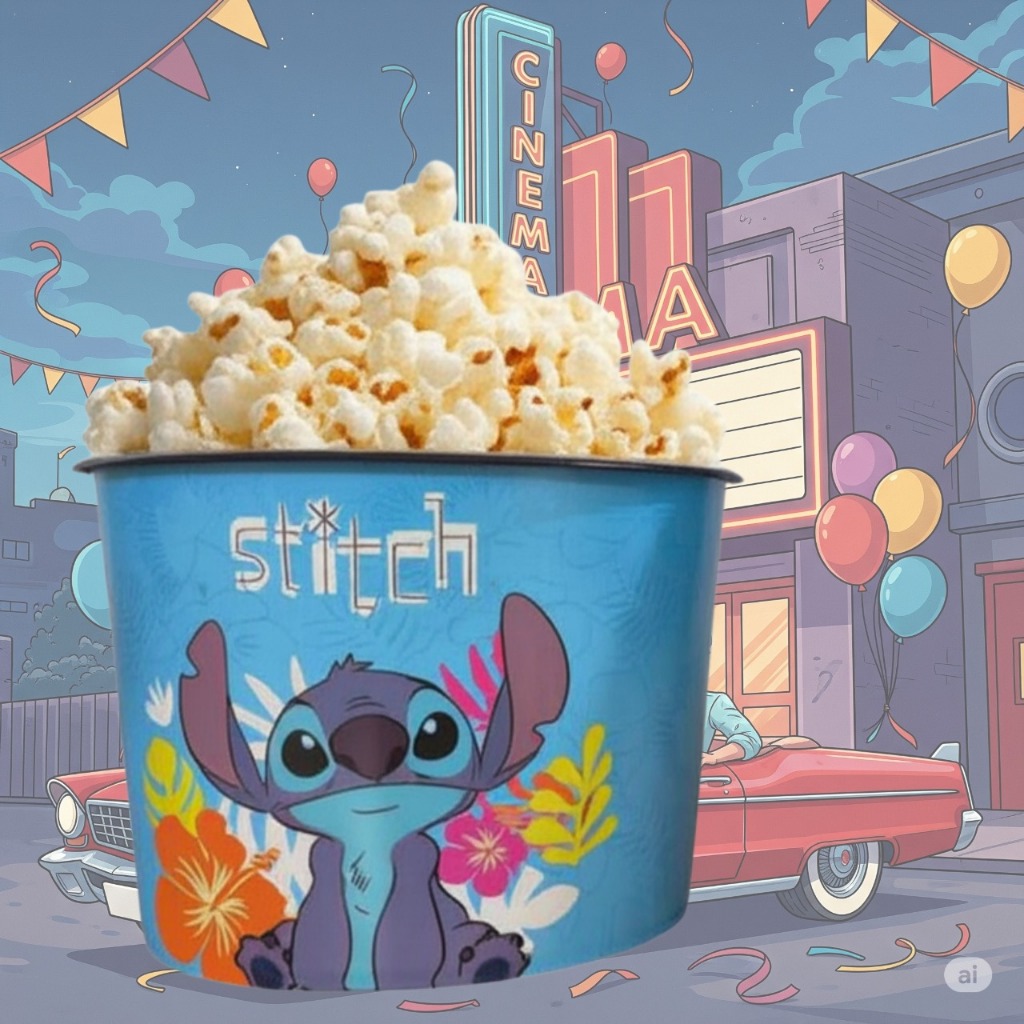 Balde Para Pipoca Stitch 1,5 LT + Copo 550 Ml com Canudo - Kit Cinema Stich Kids
