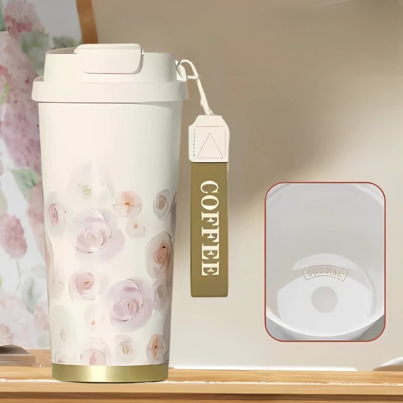 Copo Térmico Feminino para Carro 520ml antivazamento Ideal para Café Antivazamento Portátil